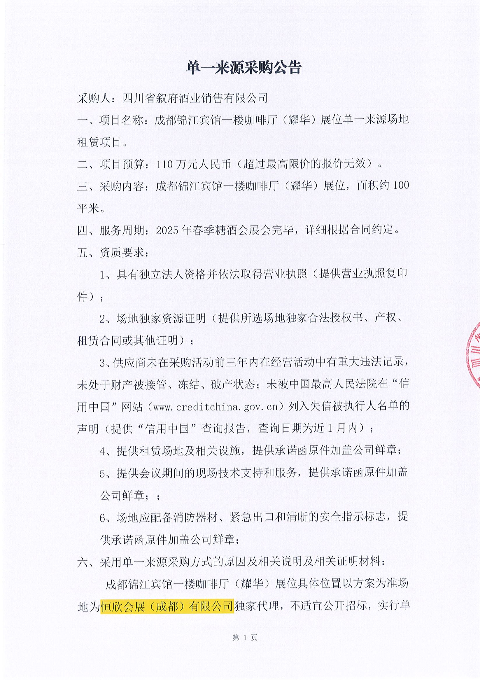 四川省敘府酒業(yè)銷售有限公司2025年春季糖酒會場地設計與制作搭建采購項目比選公示公告