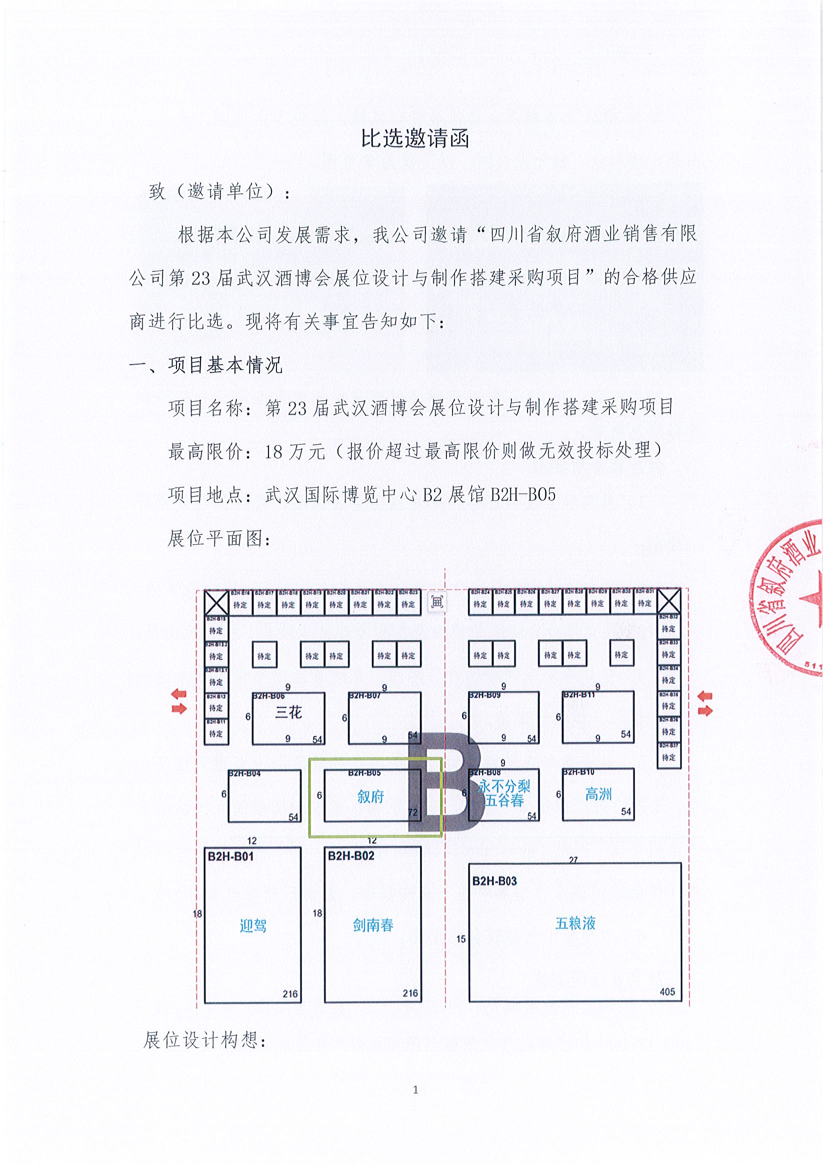 四川省敘府酒業(yè)銷售有限公司第23屆武漢酒博會展位設(shè)計與制作搭建采購項目招標(biāo)比選公示公告