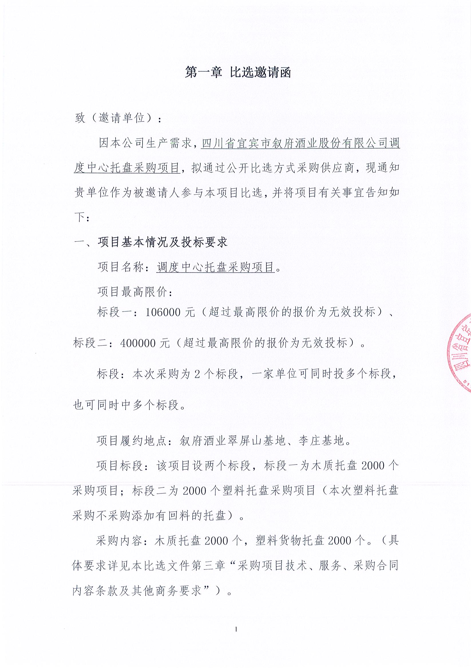 四川省宜賓市敘府酒業(yè)股份有限公司調(diào)度中心托盤采購項目比選公示公告