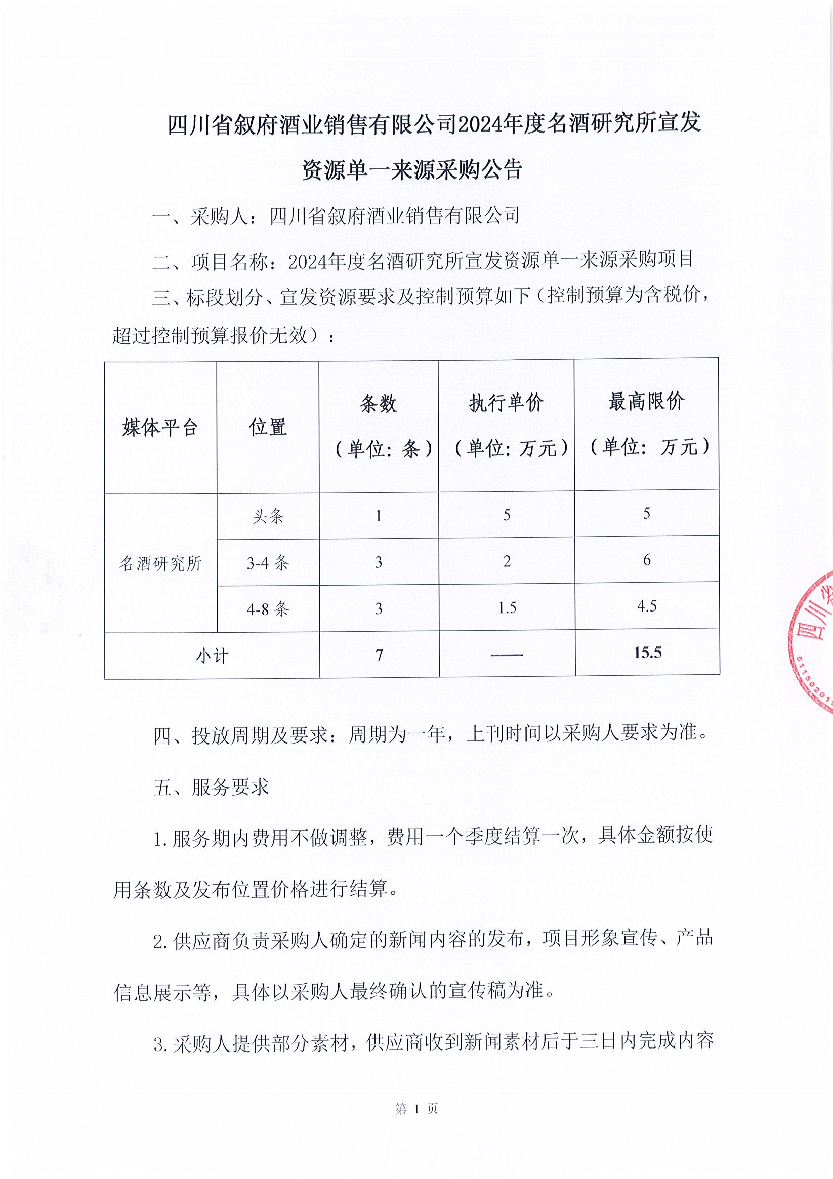 四川省敘府酒業(yè)銷(xiāo)售有限公司2024年度名酒研究所宣發(fā)資源單一來(lái)源采購(gòu)項(xiàng)目公示公告