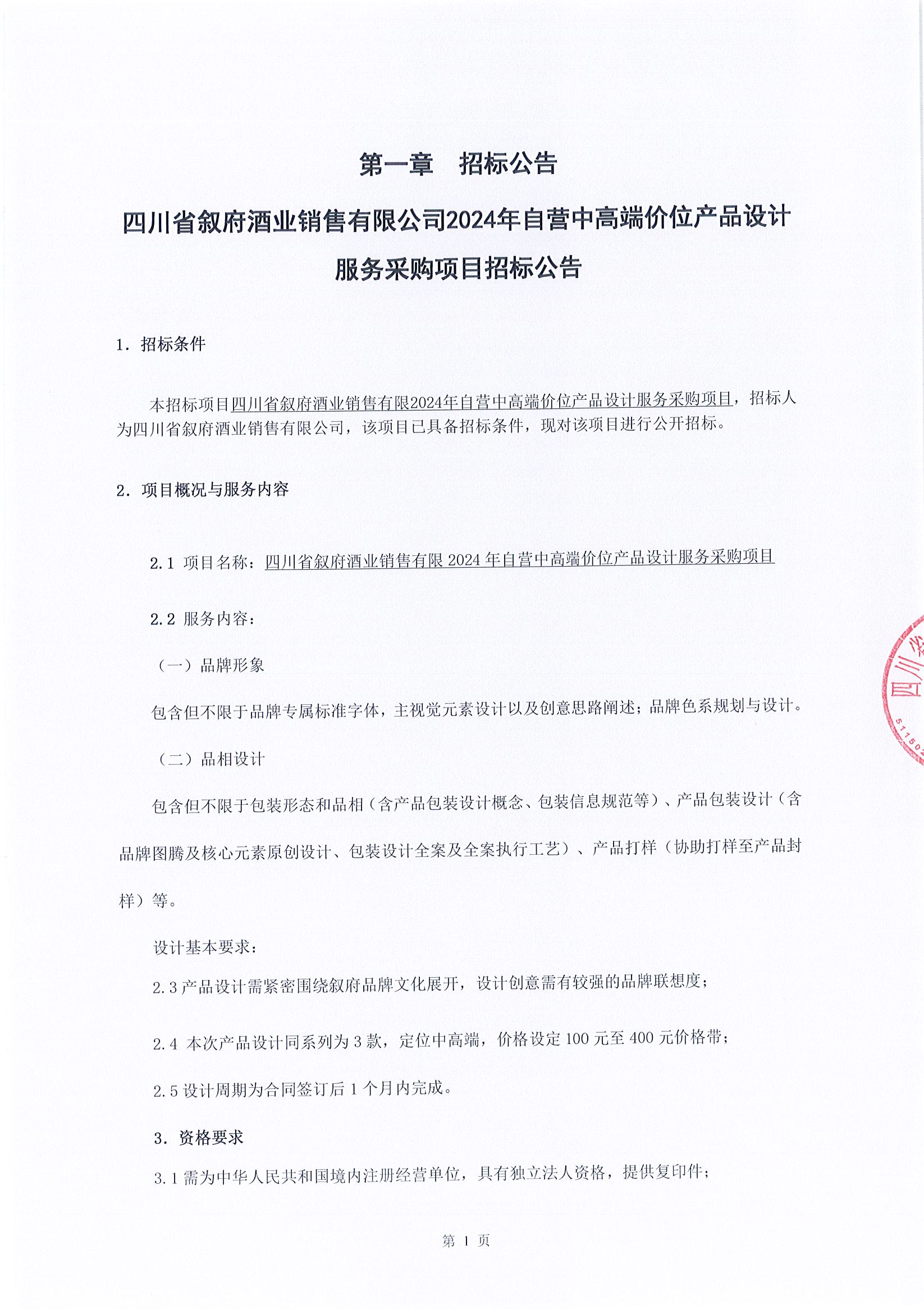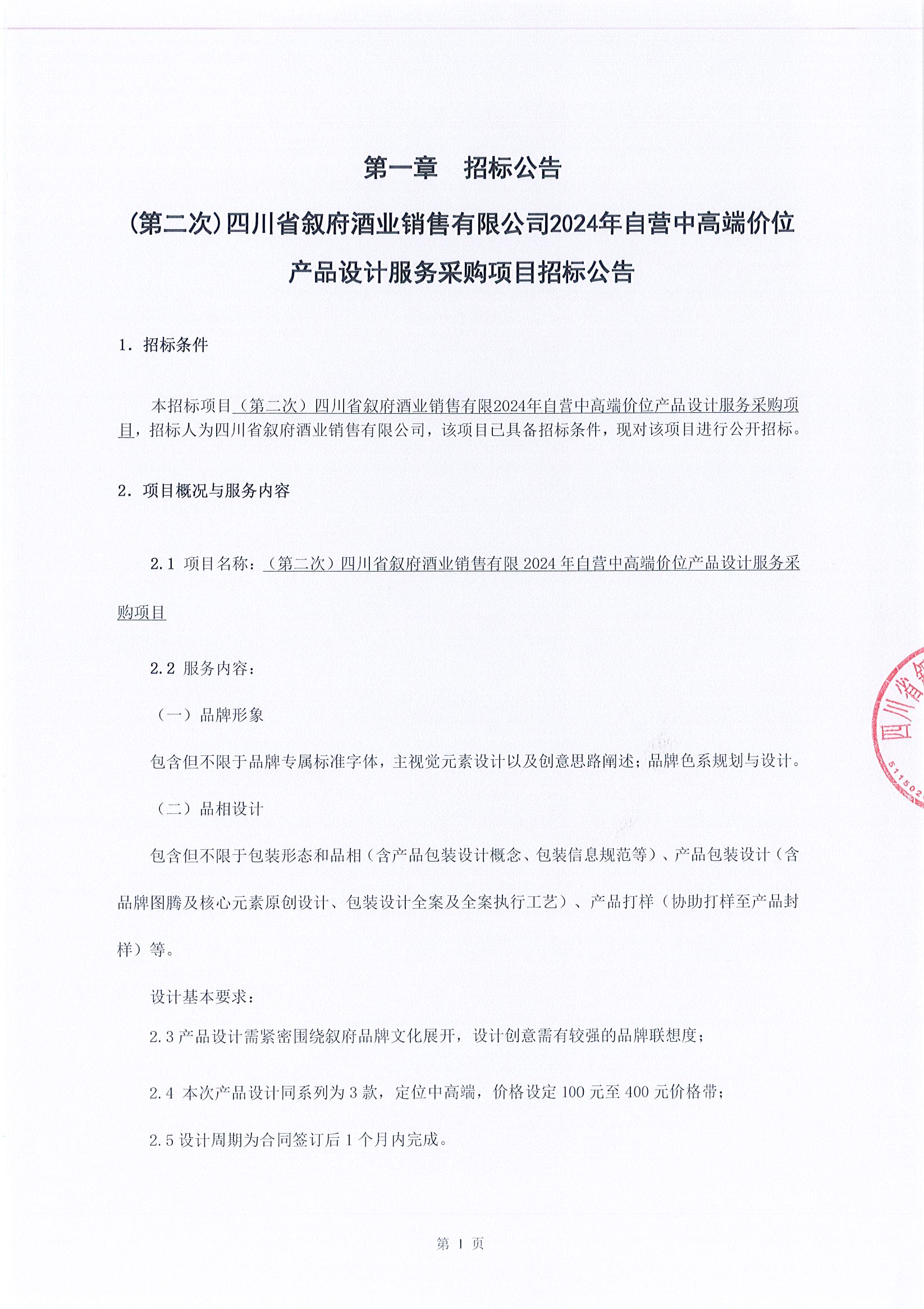 四川省敘府酒業(yè)銷售有限公司 2024年自營(yíng)中高端價(jià)位產(chǎn)品設(shè)計(jì)服務(wù)采購(gòu)項(xiàng)目招標(biāo)公告
