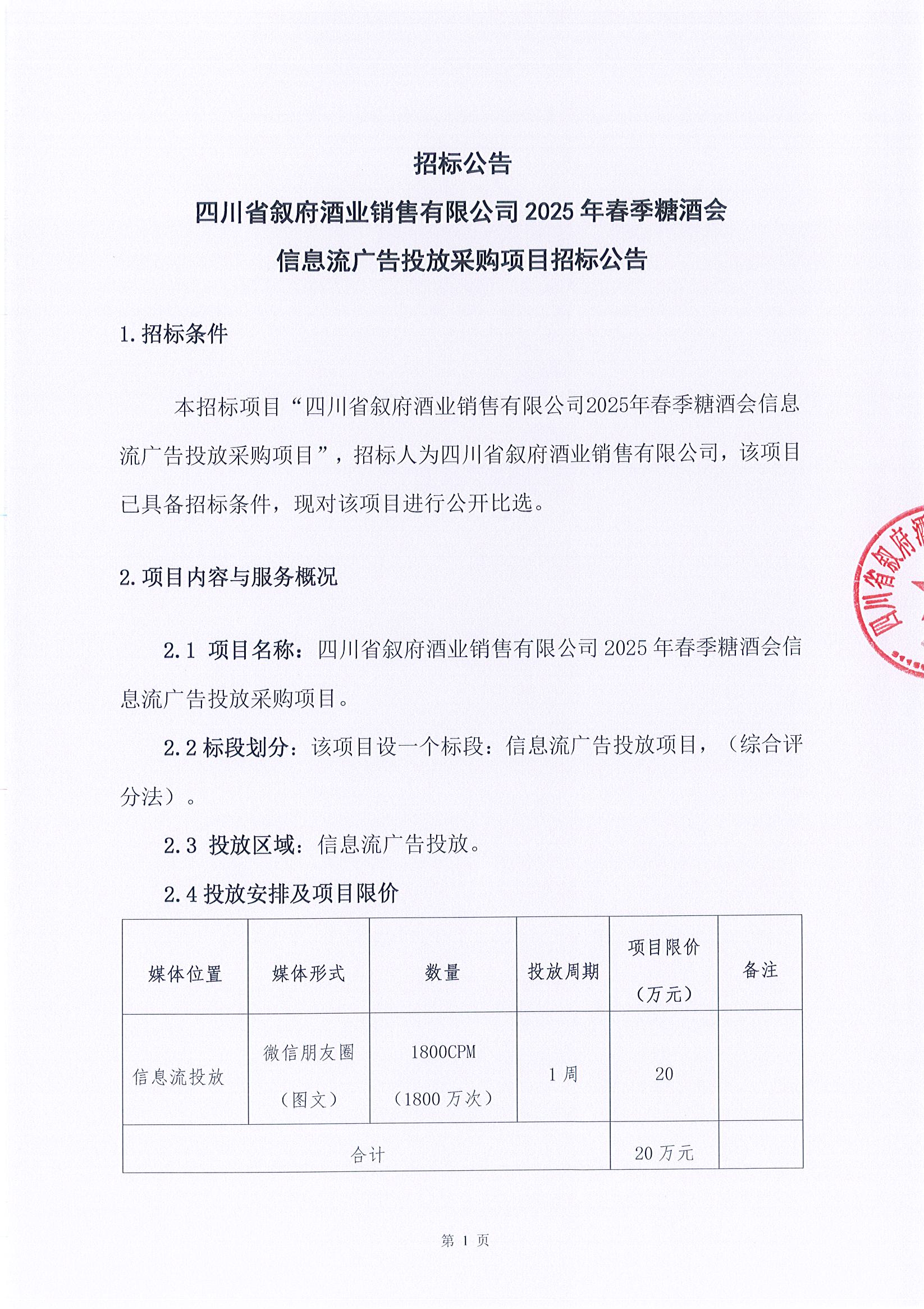 四川省敘府酒業(yè)銷售有限公司2025年春季糖酒會(huì)信息流廣告投放采購項(xiàng)目招標(biāo)公告