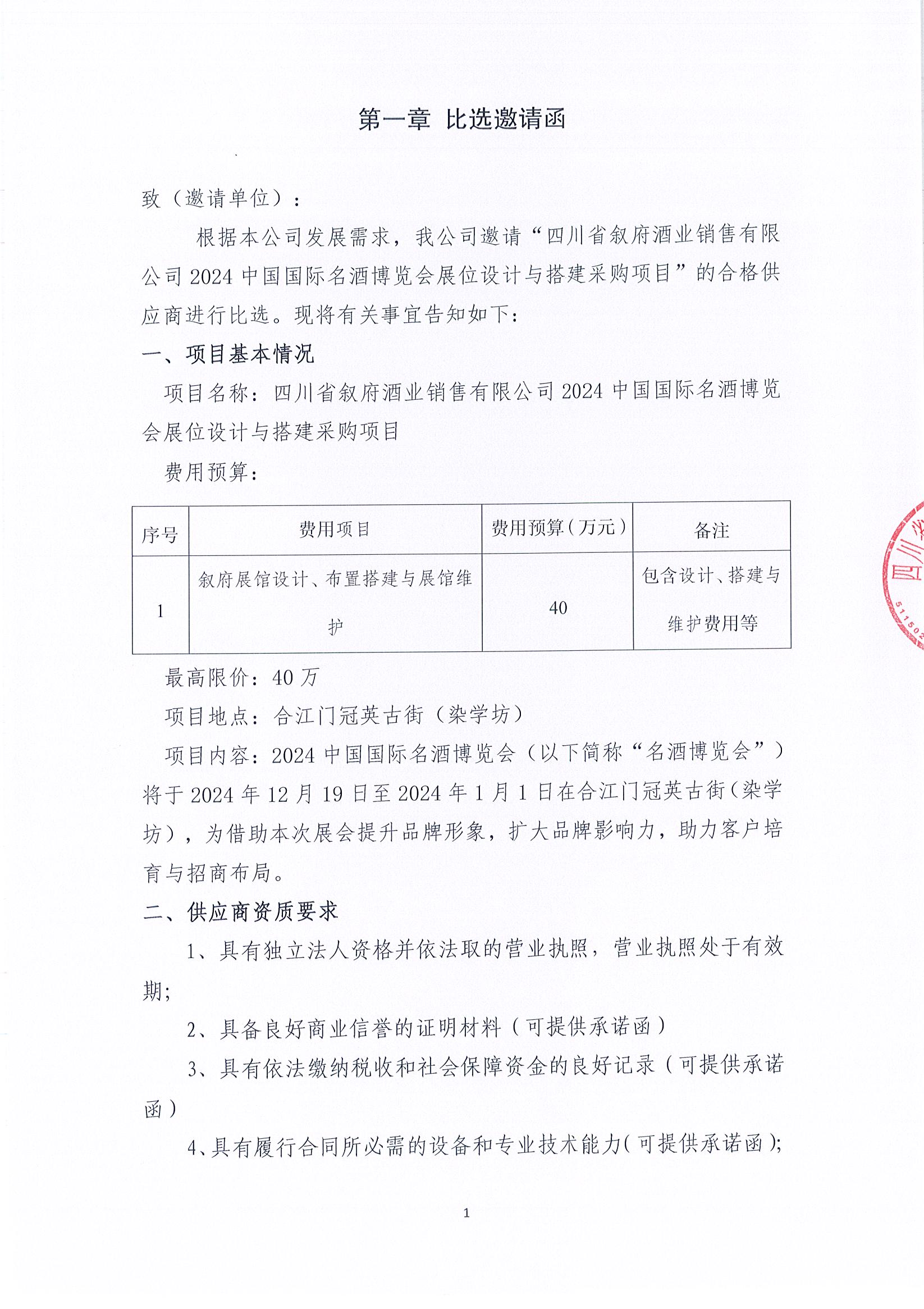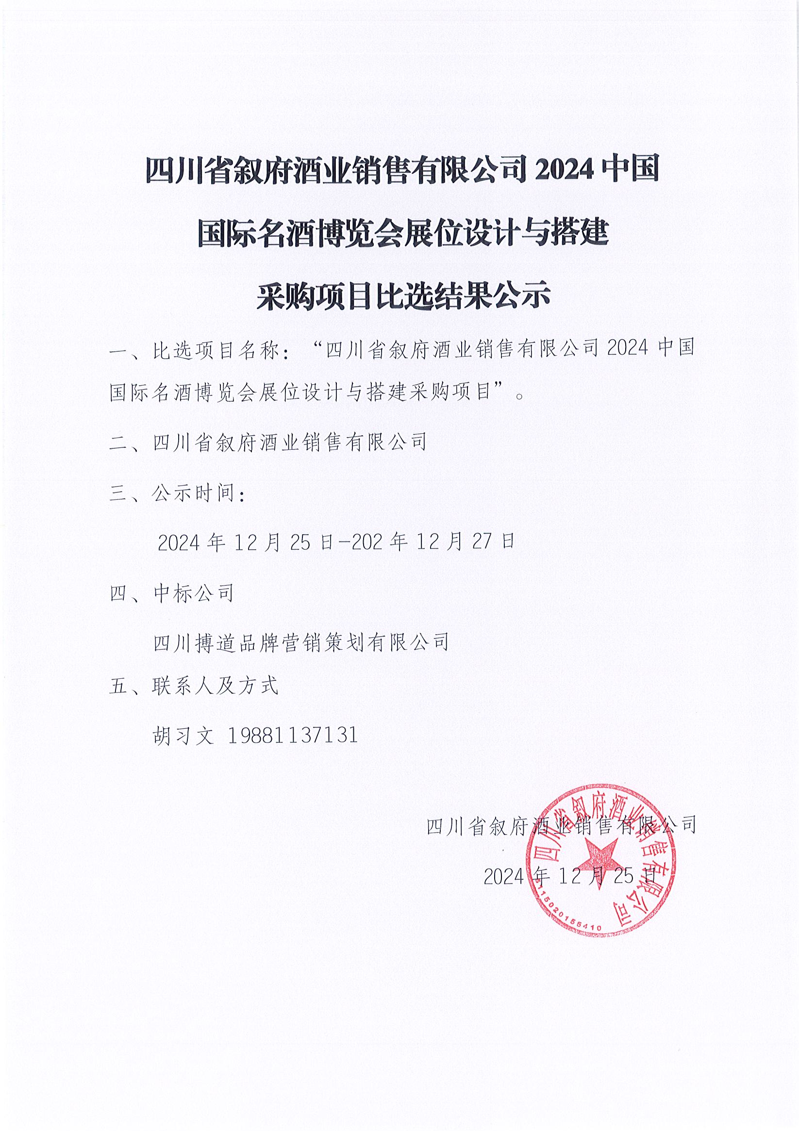 四川省敘府酒業(yè)銷售有限公司2024中國國際名酒博覽會展位設計與搭建采購項目比選結果公示公告