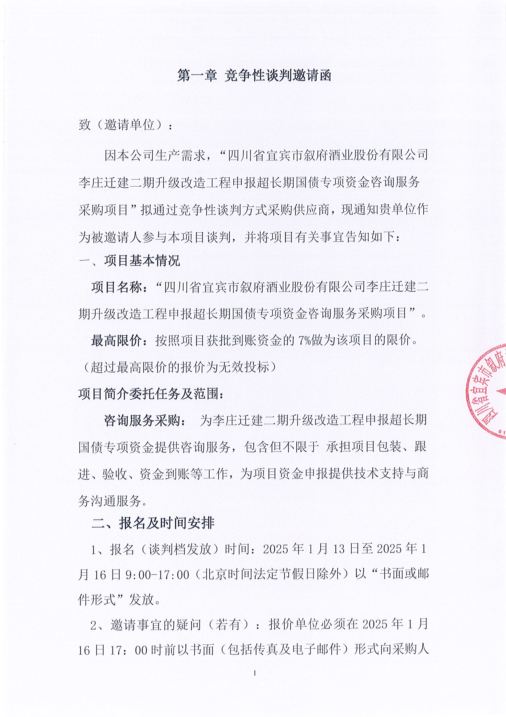四川省敘府酒業(yè)銷售有限公司2024年四季度(藍標)敘府大曲氣模采購項目比選公告