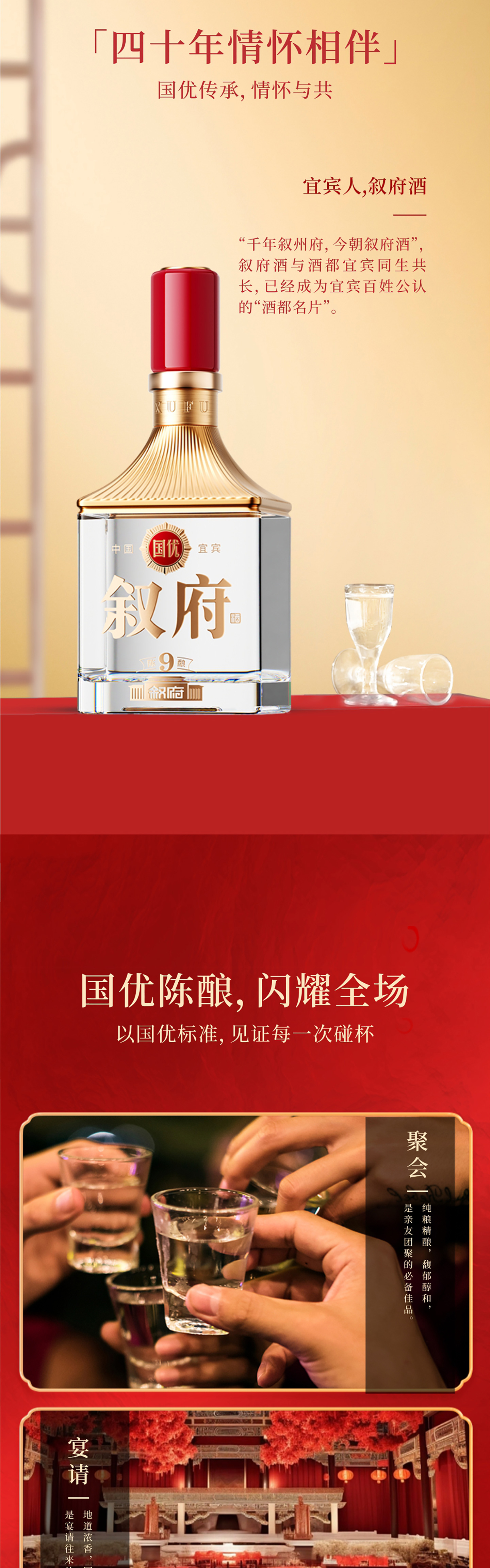 敘府陳釀,以四十年歲月堅守,融合“名優(yōu)產(chǎn)區(qū)、精釀技藝、歲月老窖,國優(yōu)品質(zhì)”,用匠心雕琢40年時光累積的豐滿,銘刻40年國優(yōu)榮耀傳承的印記