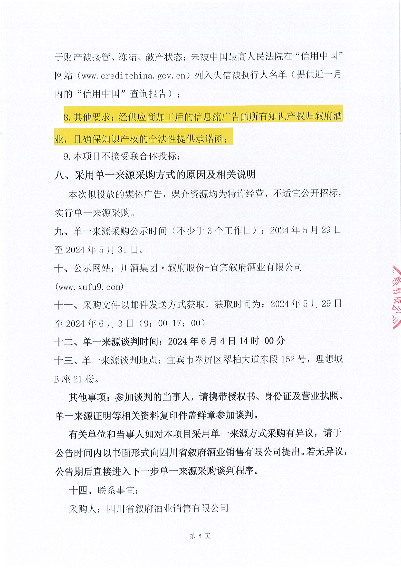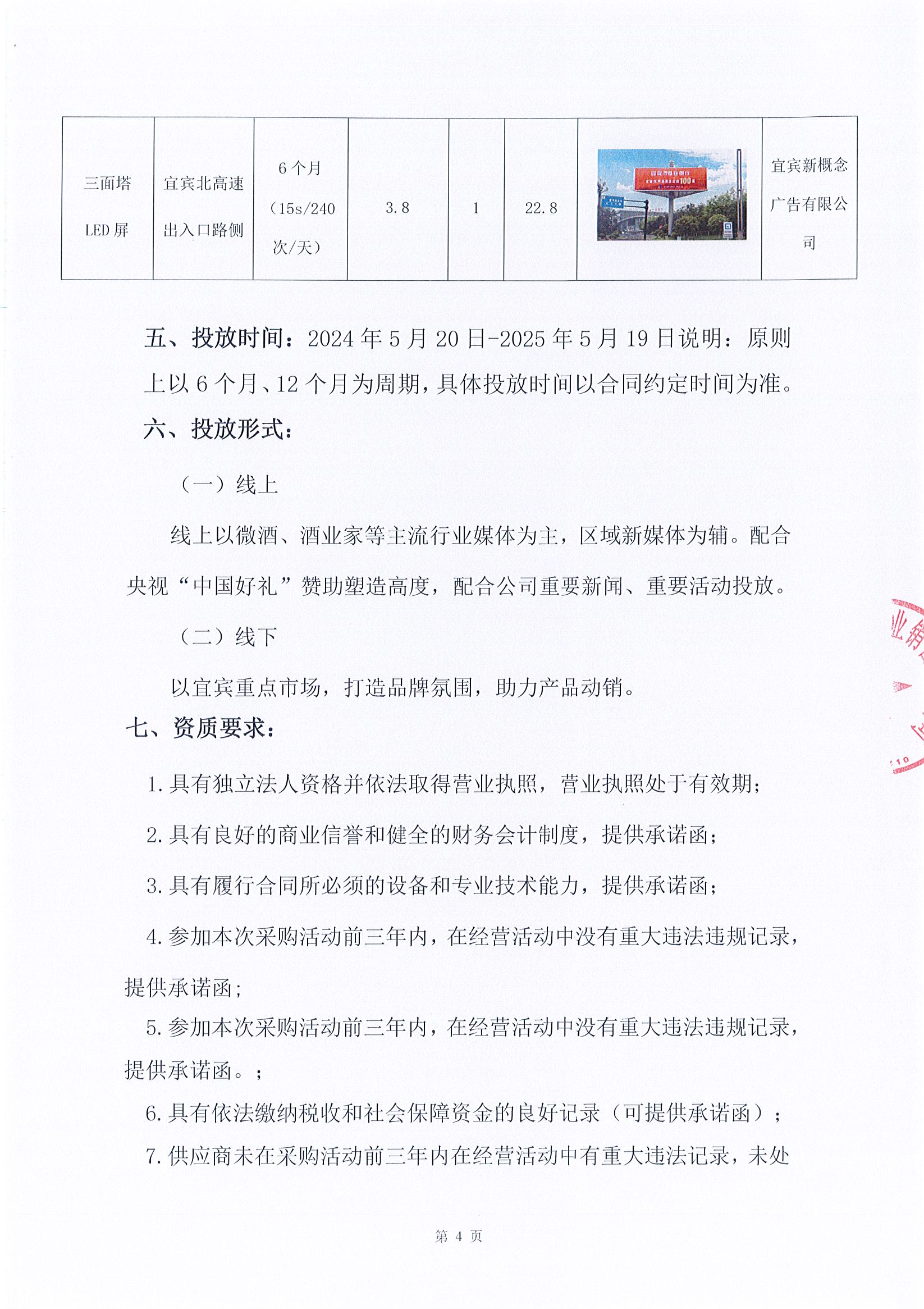 四川省敘府酒業(yè)銷(xiāo)售有限公司高速跨線橋/宜賓區(qū)域道閘廣告投放采購(gòu)項(xiàng)目公開(kāi)比選公示公告