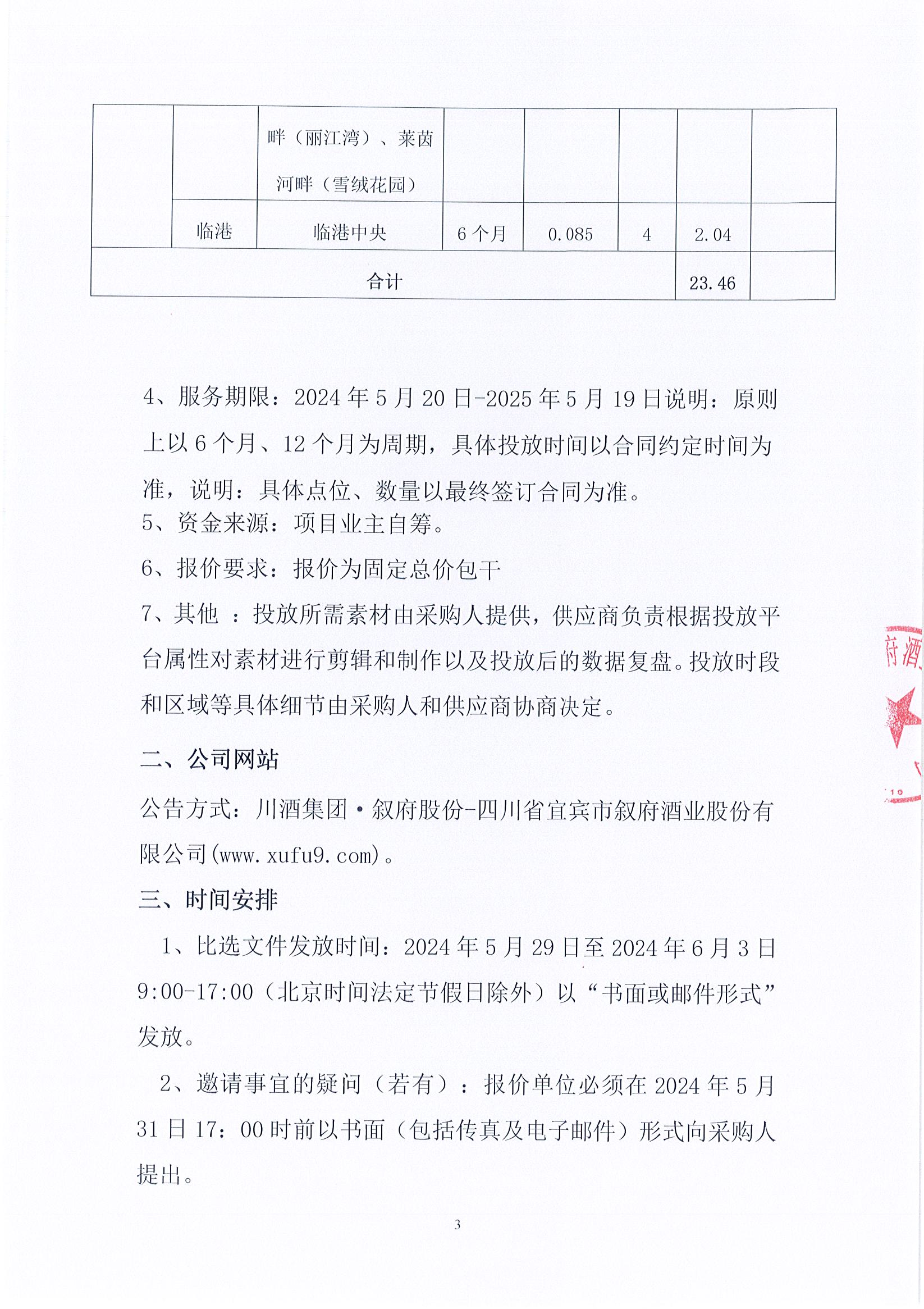 四川省敘府酒業(yè)銷(xiāo)售有限公司2024年第一階段廣告投放項(xiàng)目單一來(lái)源采購(gòu)公示公告
