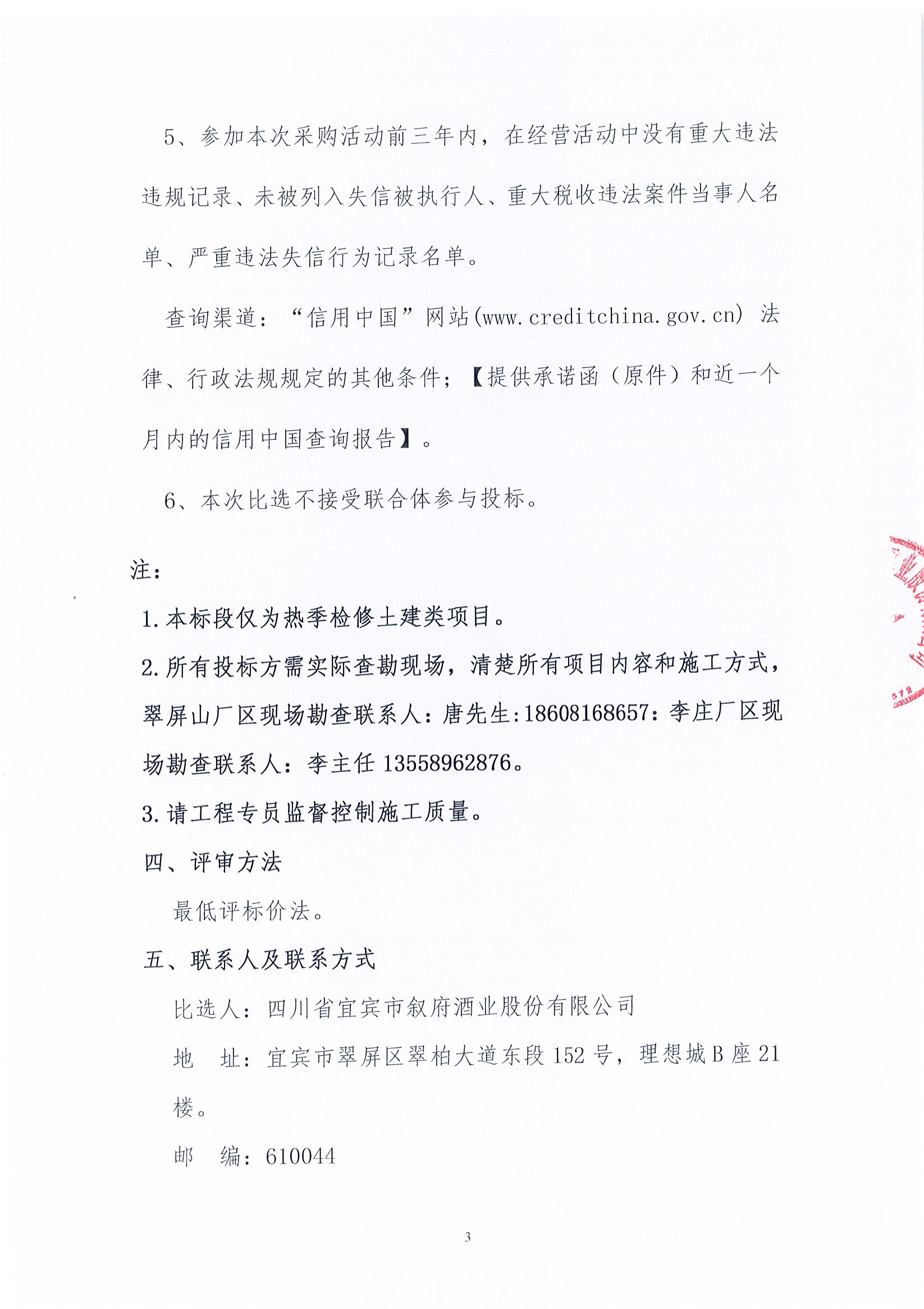 四川省宜賓市敘府酒業(yè)股份有限公司 包裝車間及糧庫與李莊廠區(qū)廢棄物料外包處置項(xiàng)目 競(jìng)價(jià)公告