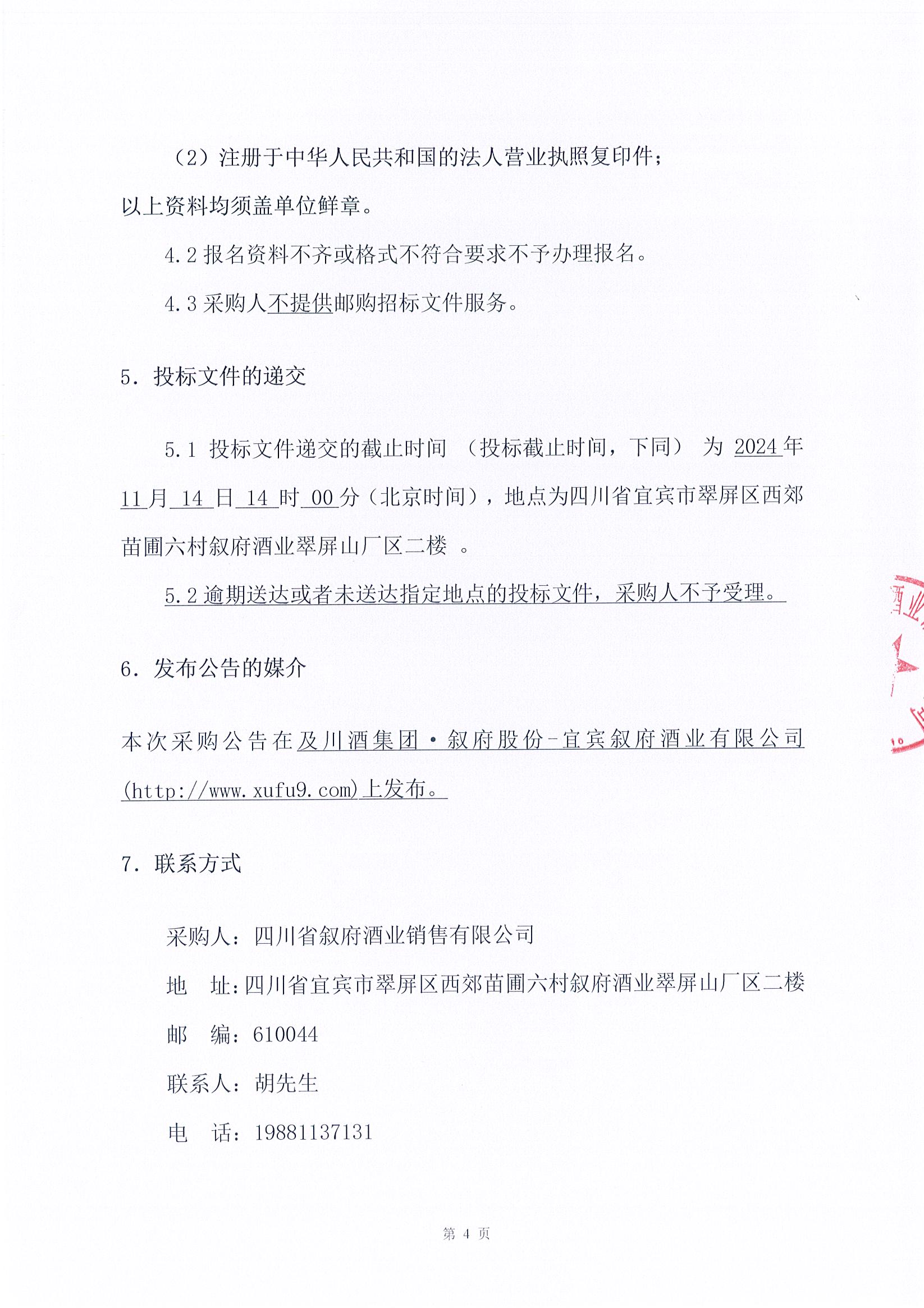四川省敘府酒業(yè)銷售有限公司2024年敘府藍(lán)標(biāo)文化季媒體投放采購項(xiàng)目比選結(jié)果公示公告