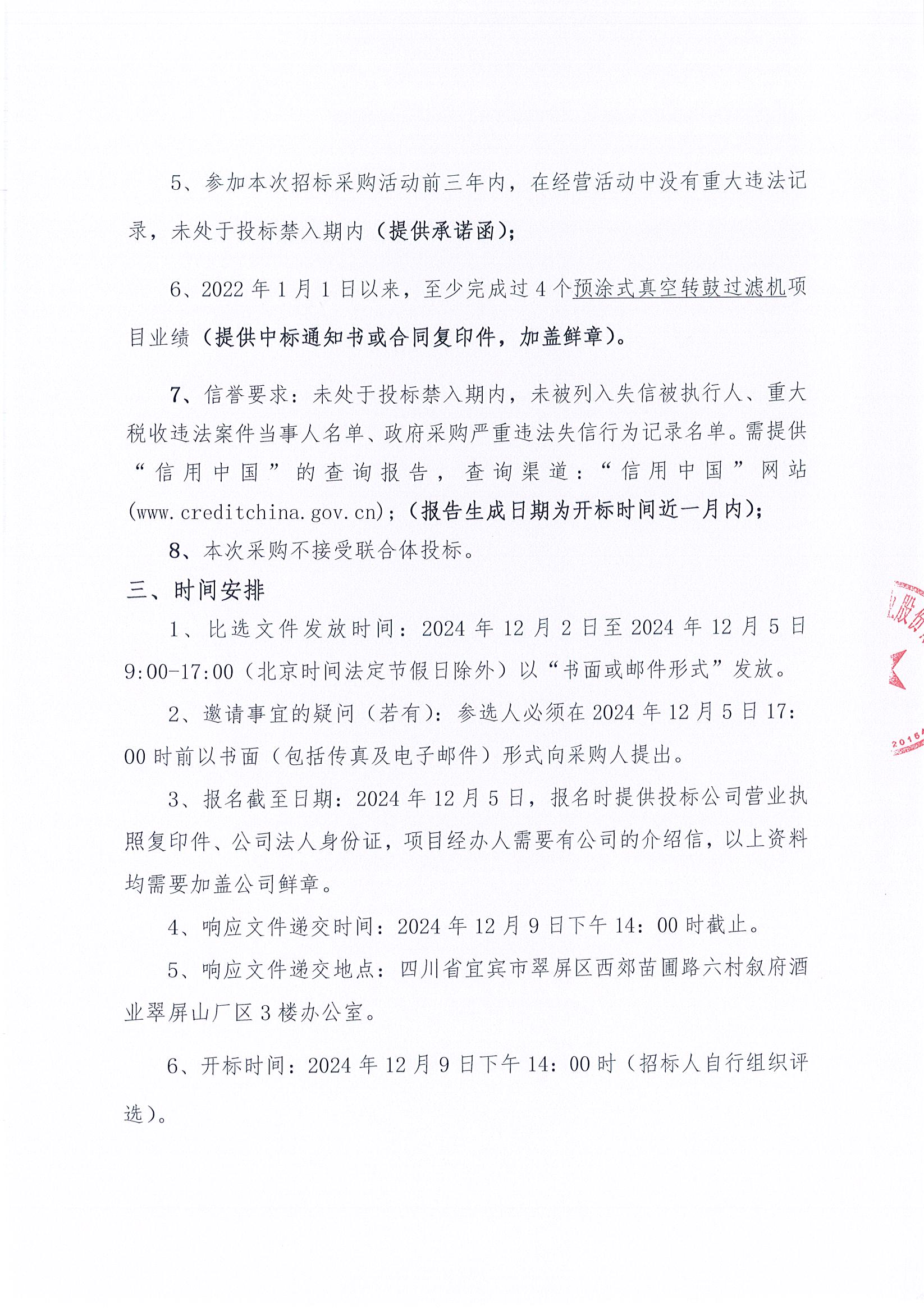 四川省宜賓市敘府酒業(yè)股份有限公司科技研發(fā)中心預涂式真空轉鼓過濾機采購項目比選公示公告