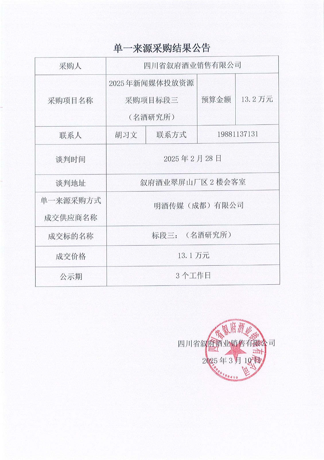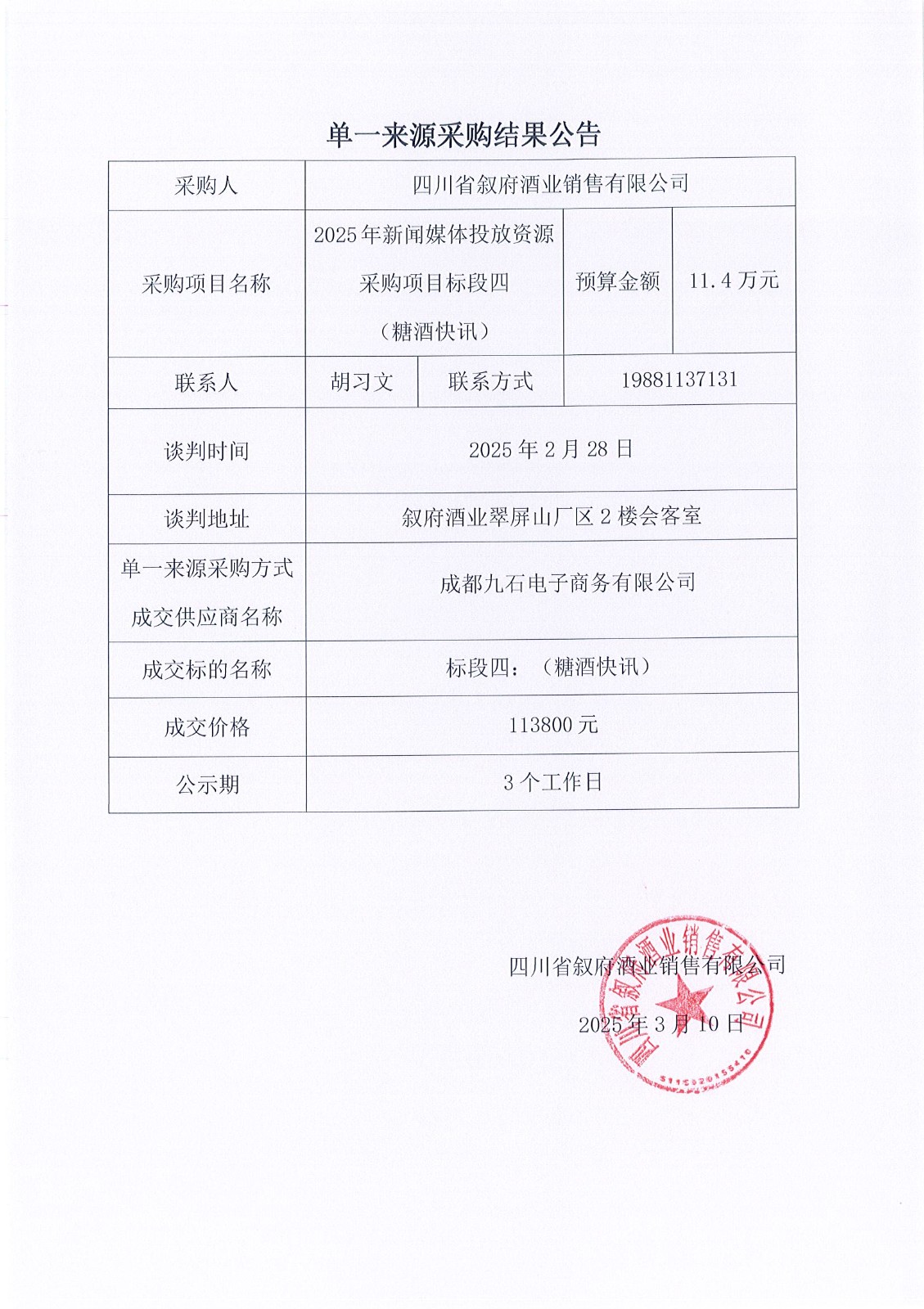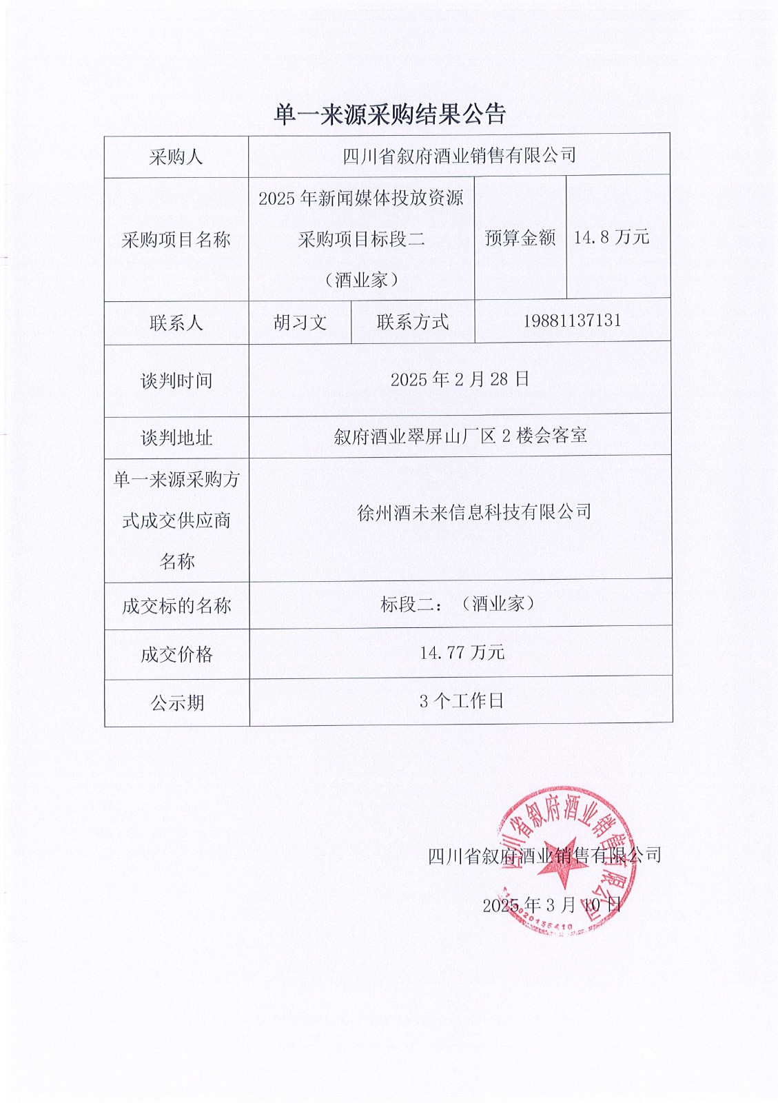 四川省敘府酒業(yè)銷售有限公司2025年春季糖酒會廣告投放采購項目流標公示公告