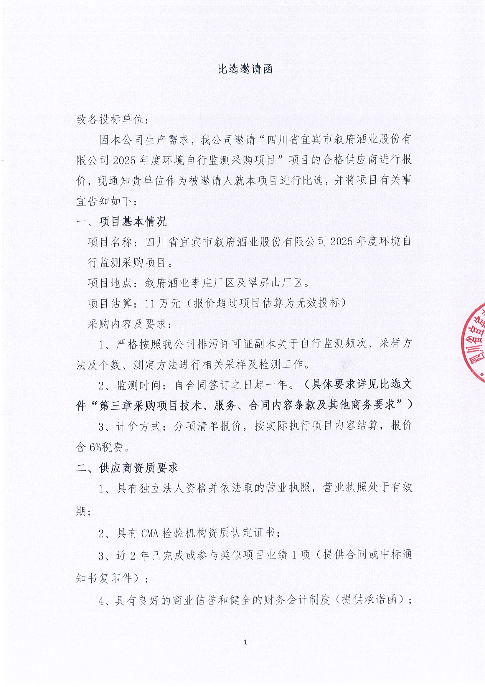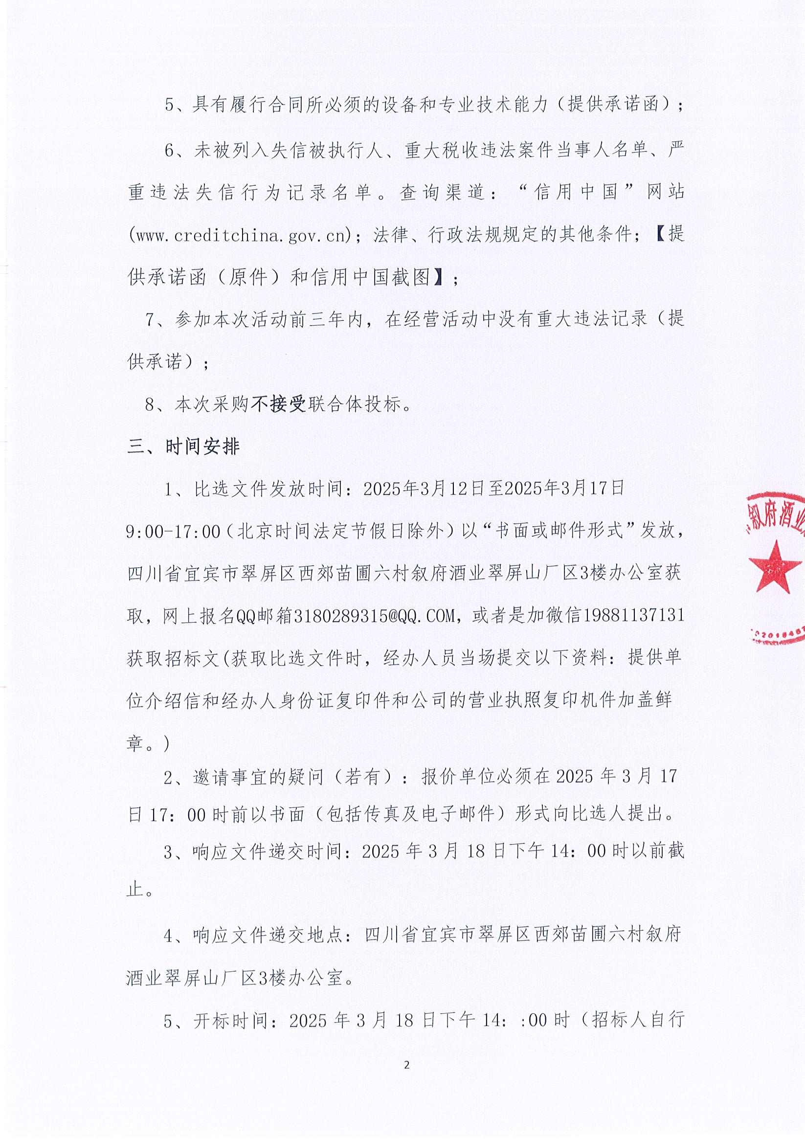 第二次四川省敘府酒業(yè)銷售有限公司成都營(yíng)銷中心升級(jí)改造服務(wù)采購(gòu)項(xiàng)目公開比選招標(biāo)公告