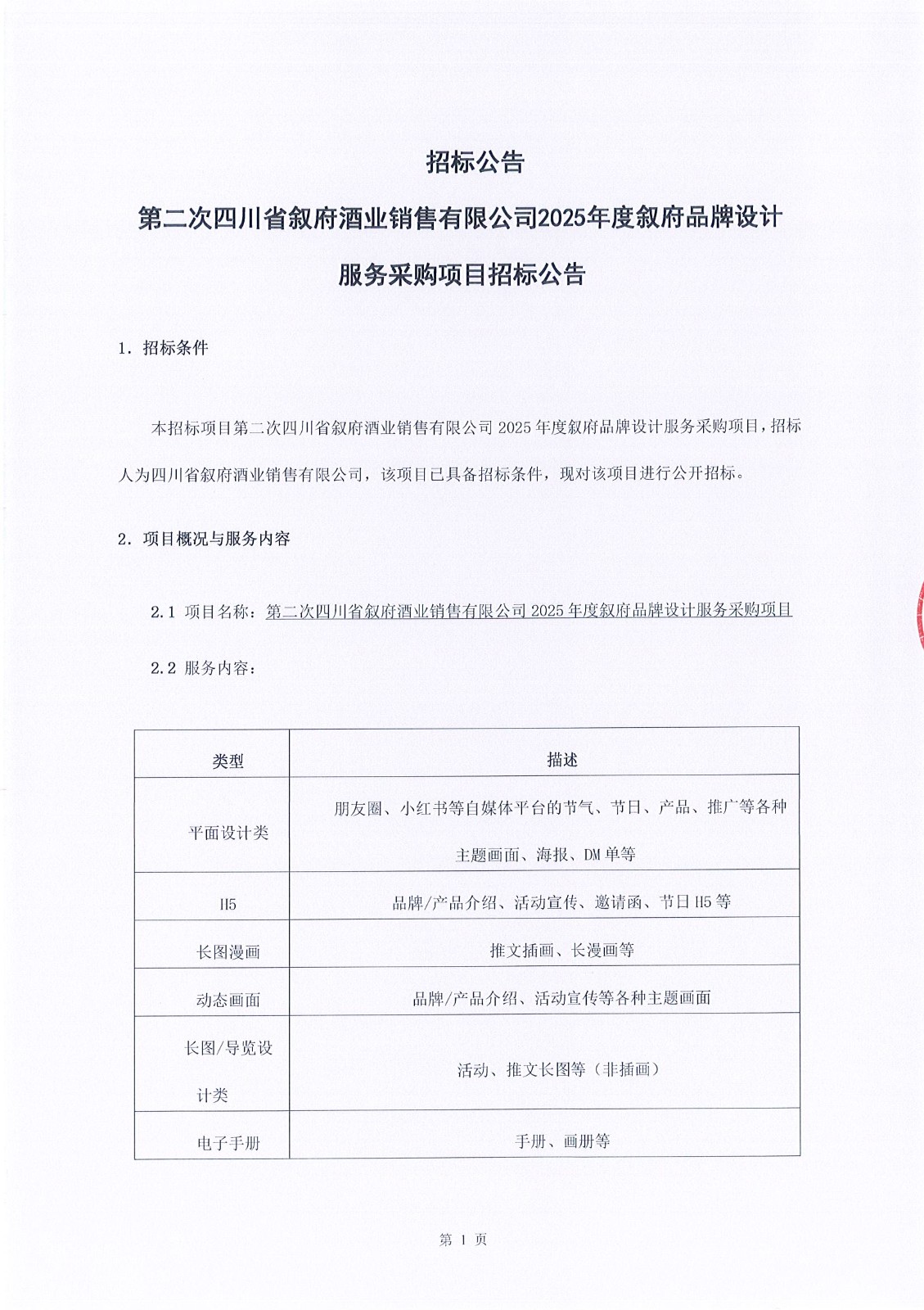 第二次四川省敘府酒業(yè)銷售有限公司成都營銷中心升級(jí)改造服務(wù)采購項(xiàng)目公開比選招標(biāo)公告