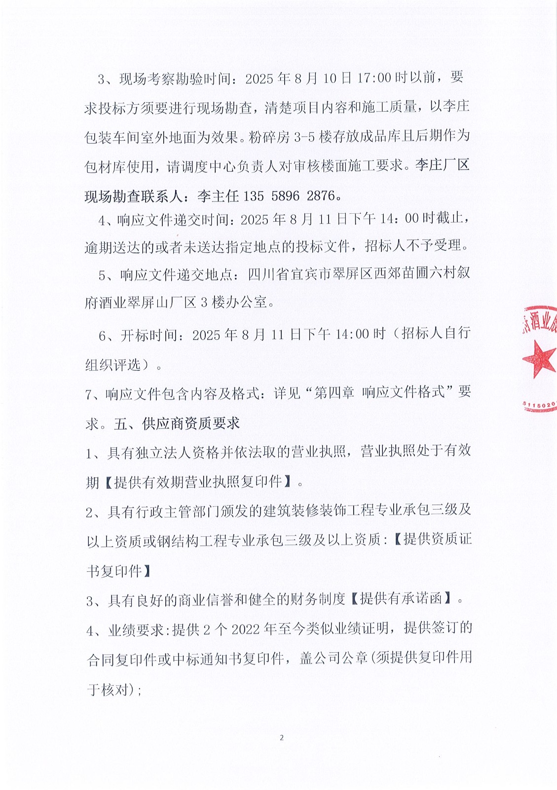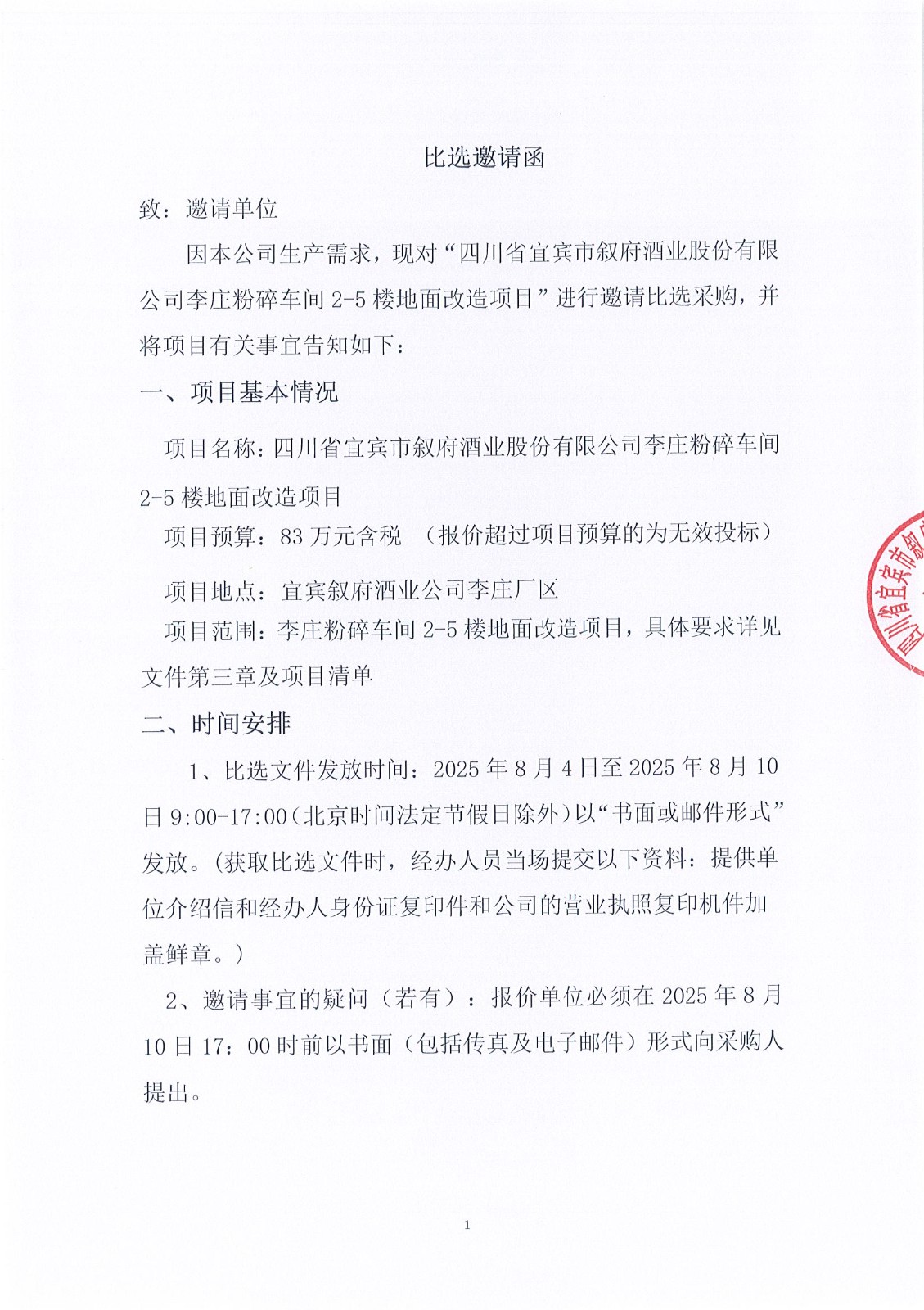 四川省宜賓市敘府酒業(yè)股份有限公司李莊粉碎車間2-5樓地面改造項(xiàng)目招標(biāo)公告