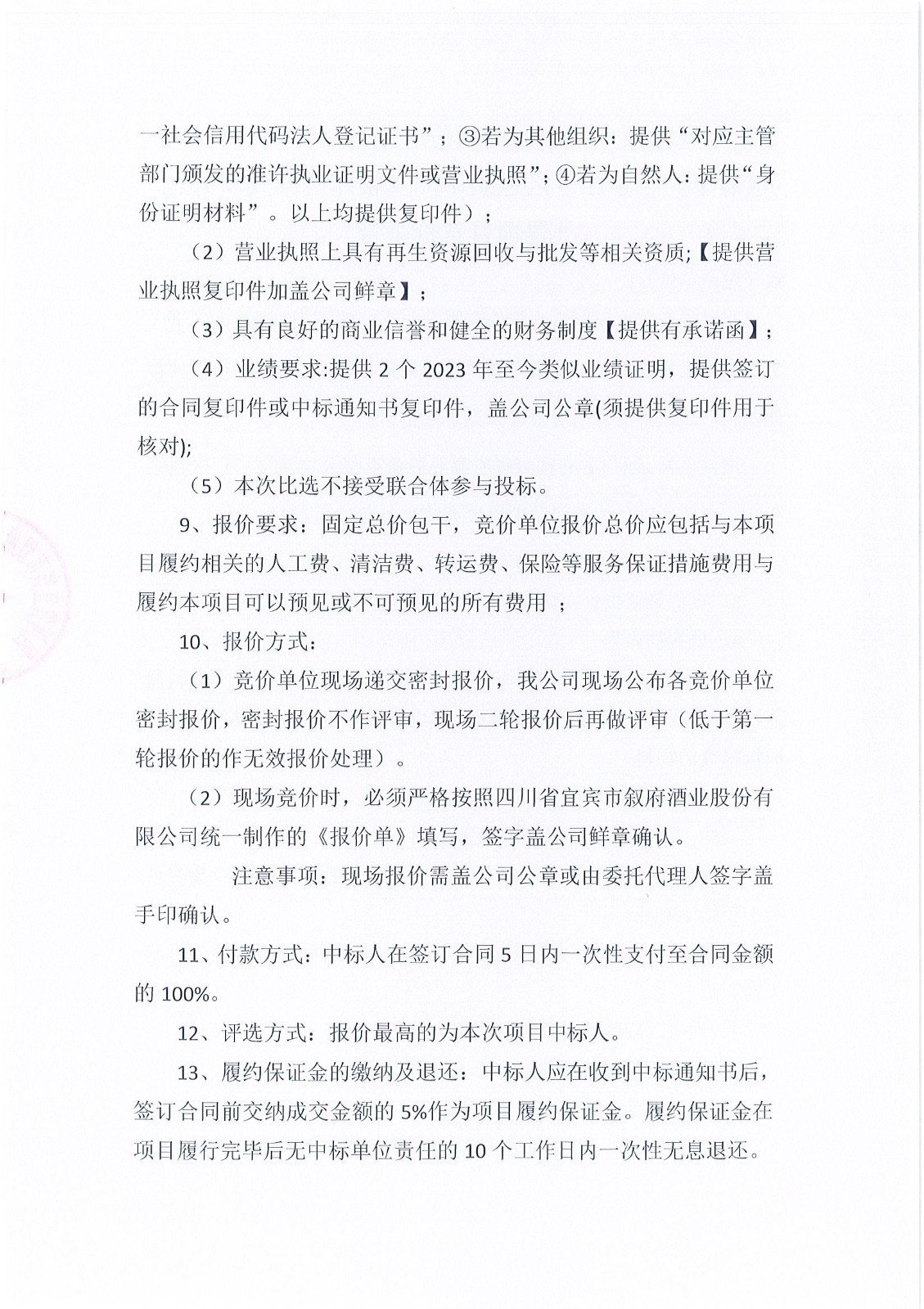 第二次四川省宜賓市敘府酒業(yè)股份有限公司熱季檢修李莊自動化量水設(shè)備制安采購項目