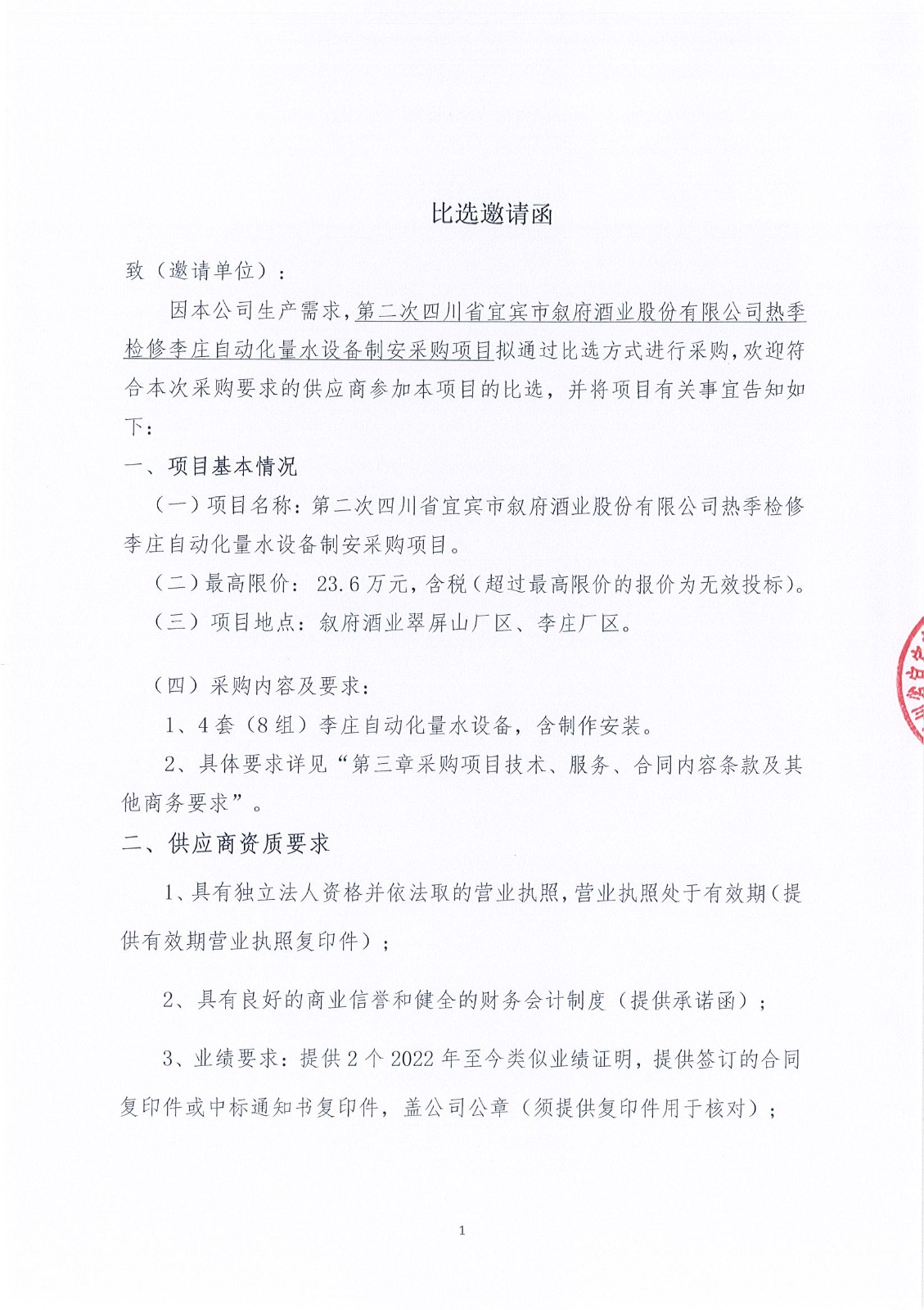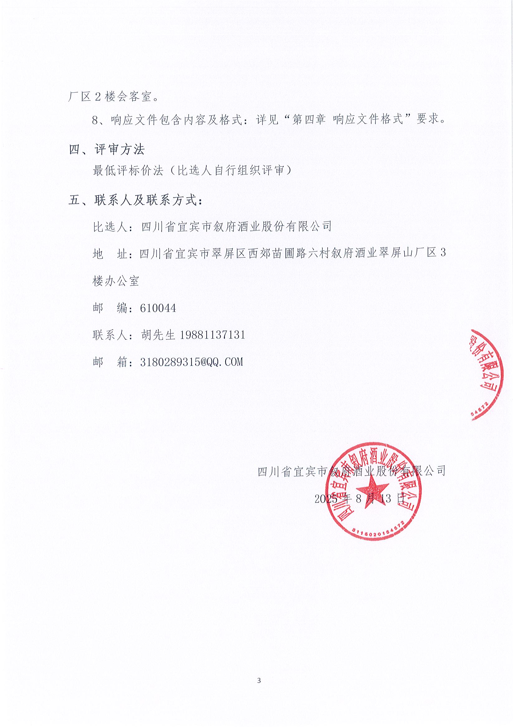 四川省宜賓市敘府酒業(yè)股份有限公司翠屏山廠區(qū)包裝車間、李莊廠區(qū)包裝車間及糧庫廢棄物料外包處置項目