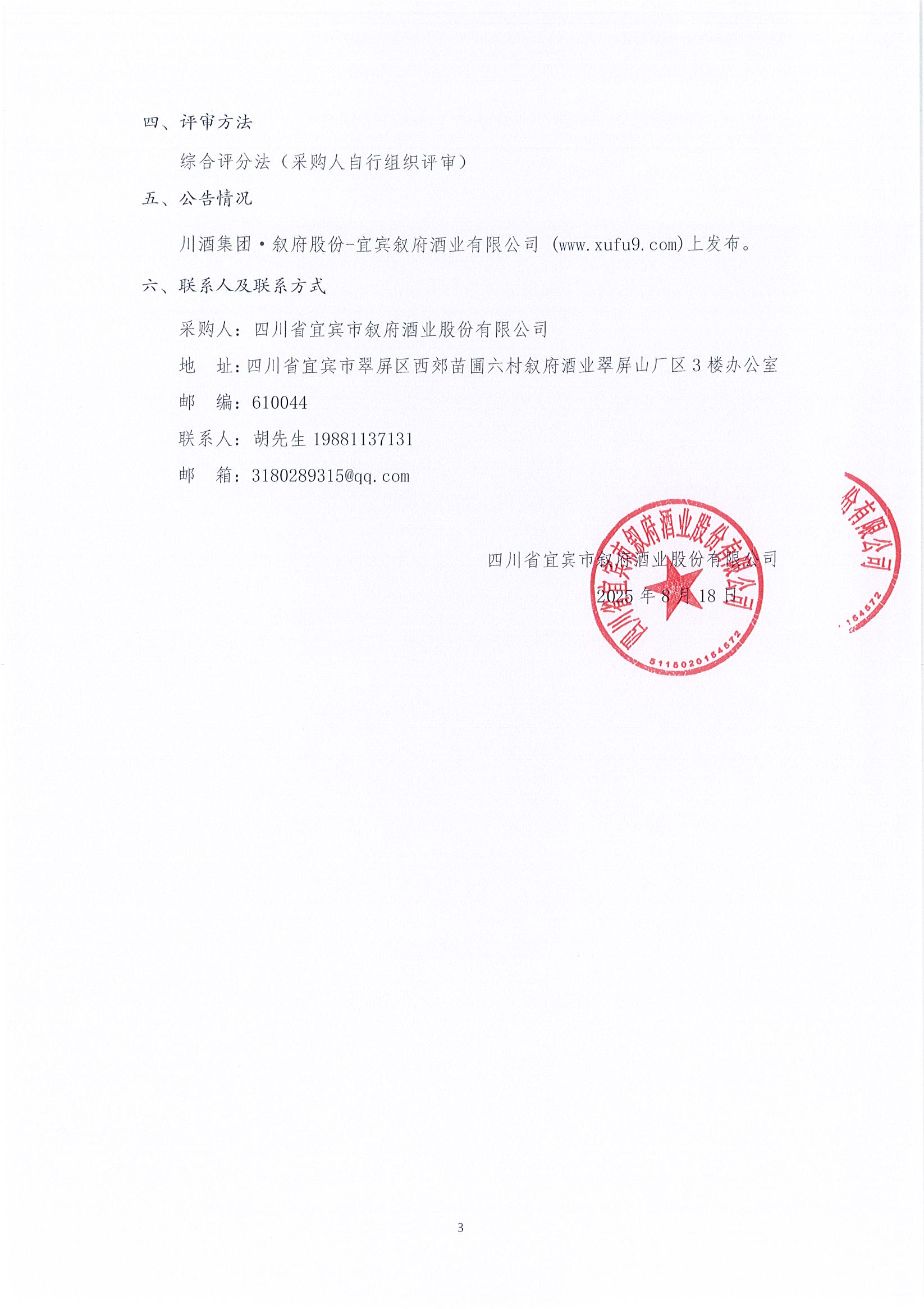 第二次四川省宜賓市敘府酒業(yè)股份有限公司2025年熱季檢修采購項(xiàng)目比選結(jié)果公示