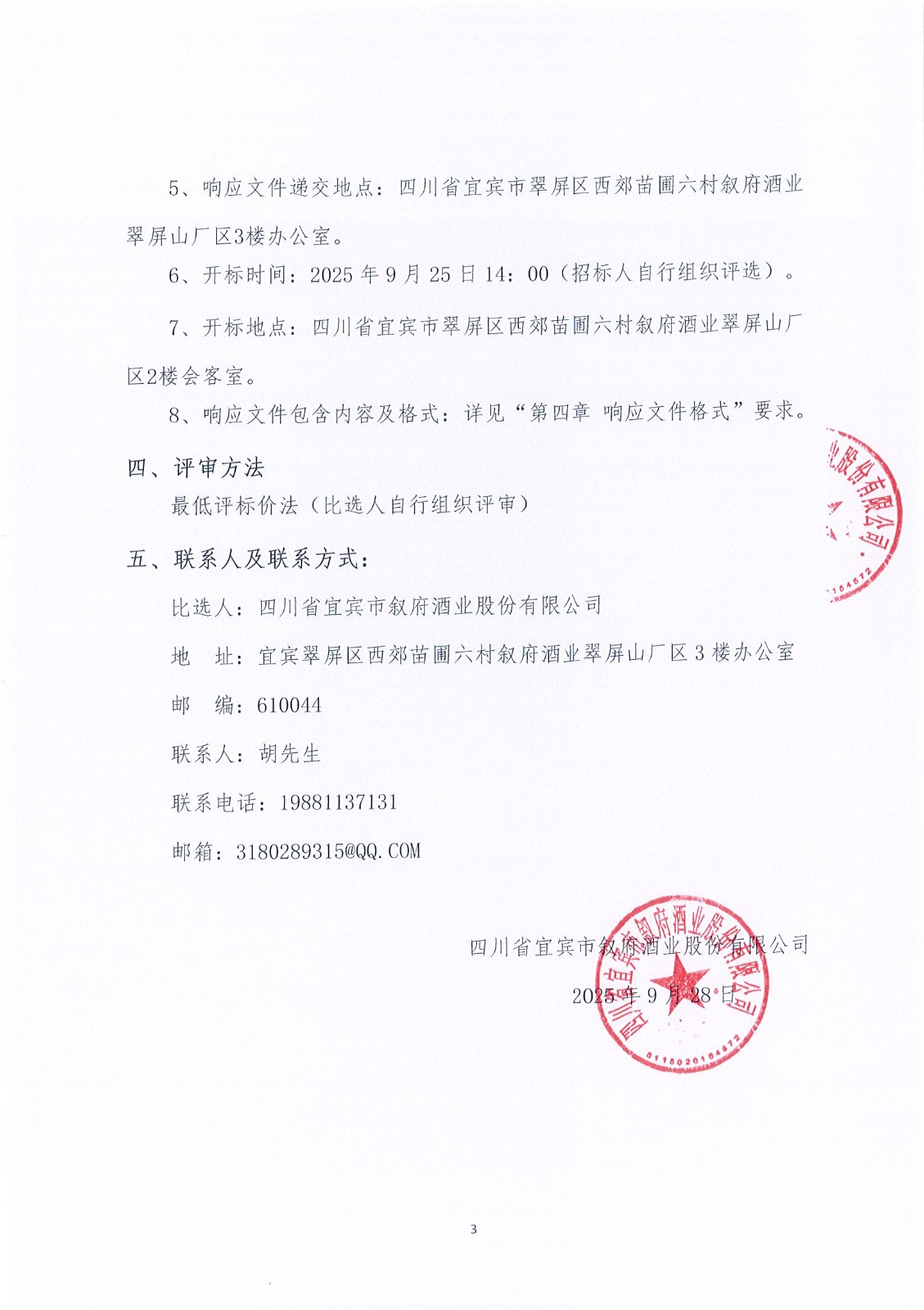 四川省敘府酒業(yè)銷售有限公司敘府大曲(藍(lán)標(biāo))產(chǎn)品TVC的創(chuàng)作與拍攝采購(gòu)項(xiàng)目中標(biāo)結(jié)果公示公告