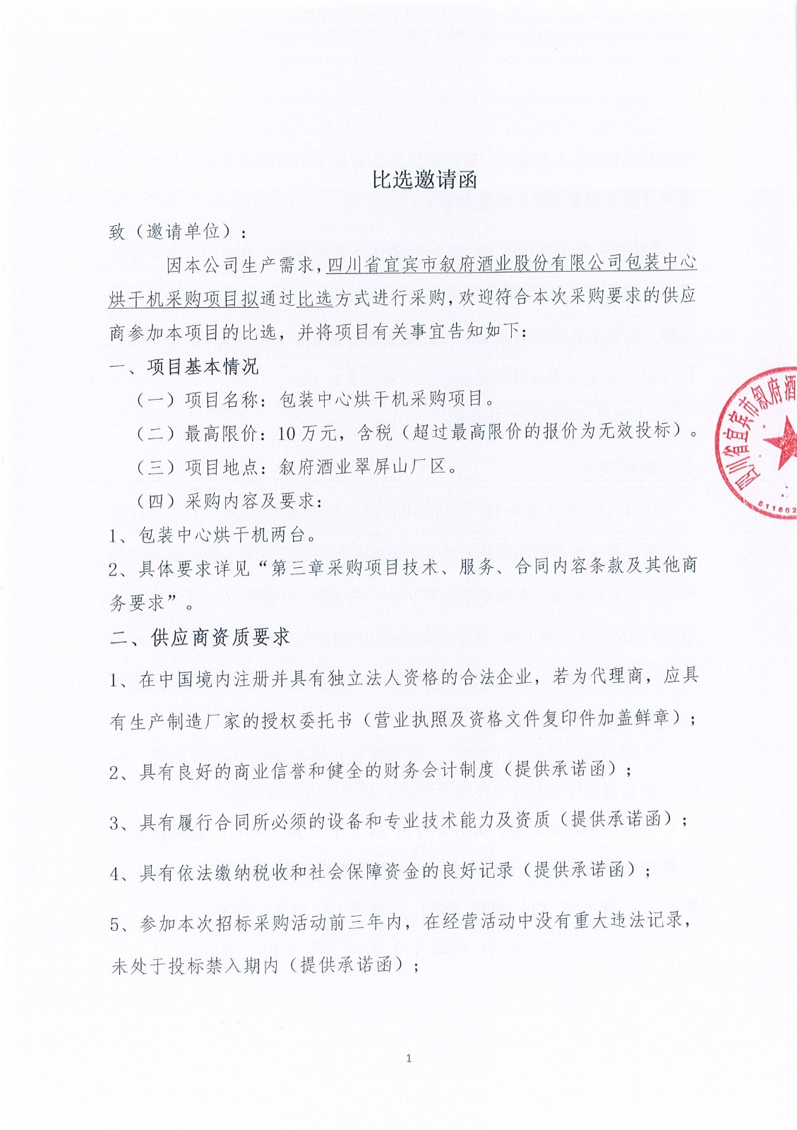 四川省宜賓市敘府酒業(yè)股份有限公司包裝中心烘干機(jī)采購(gòu)項(xiàng)目流標(biāo)公示公告