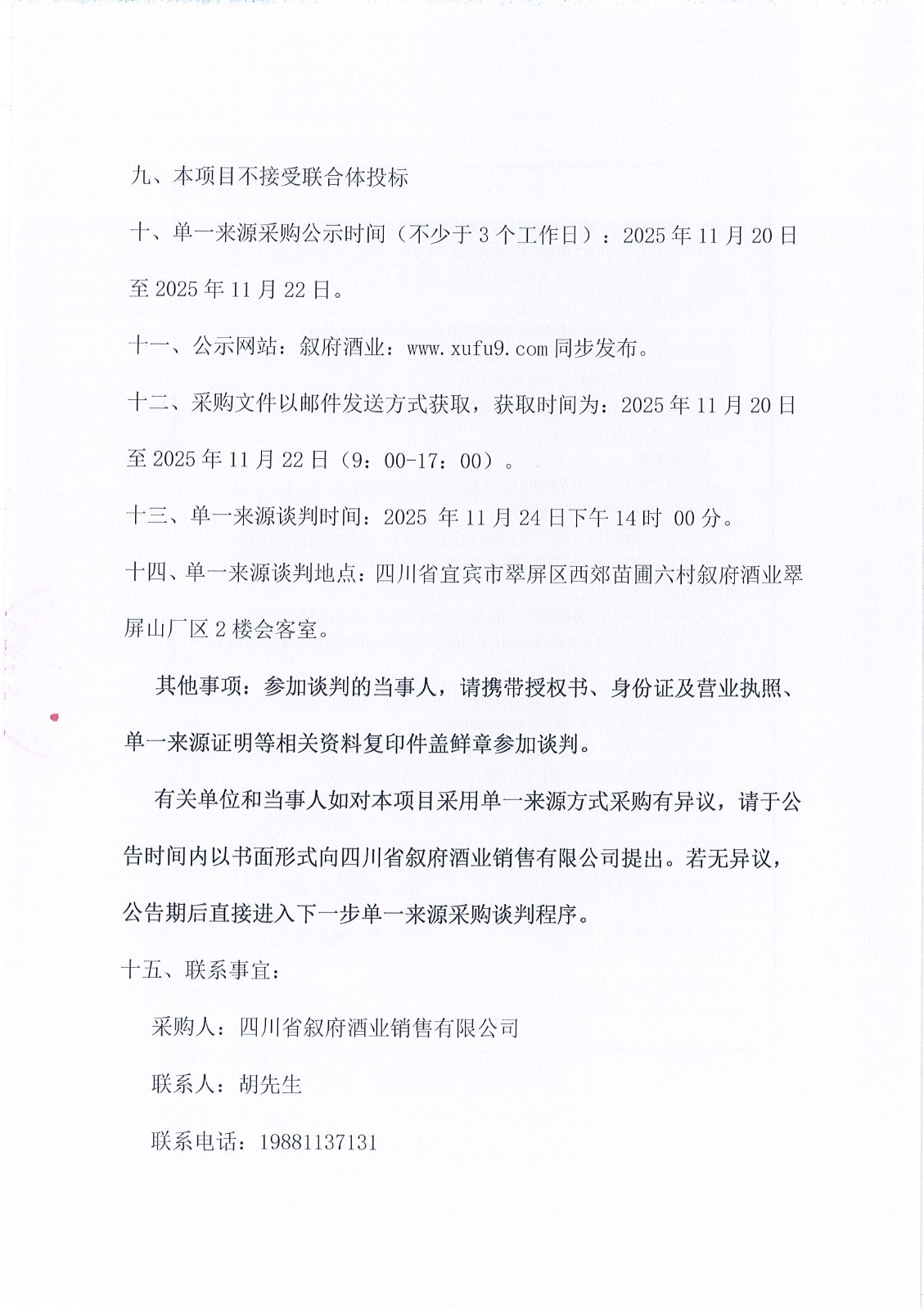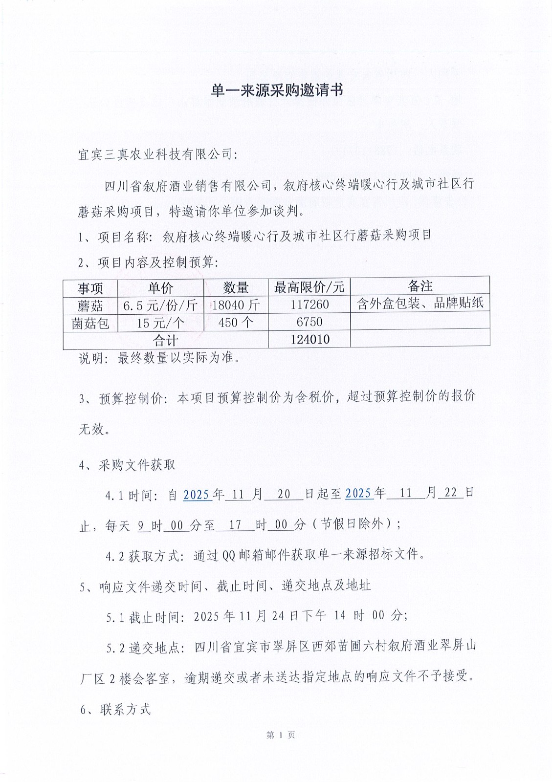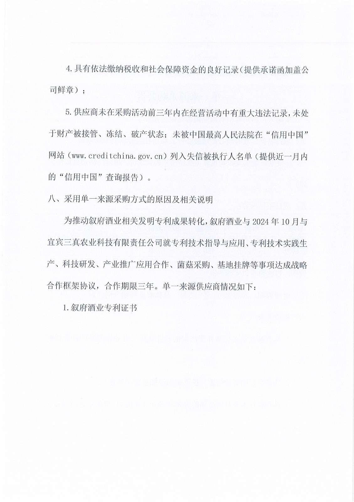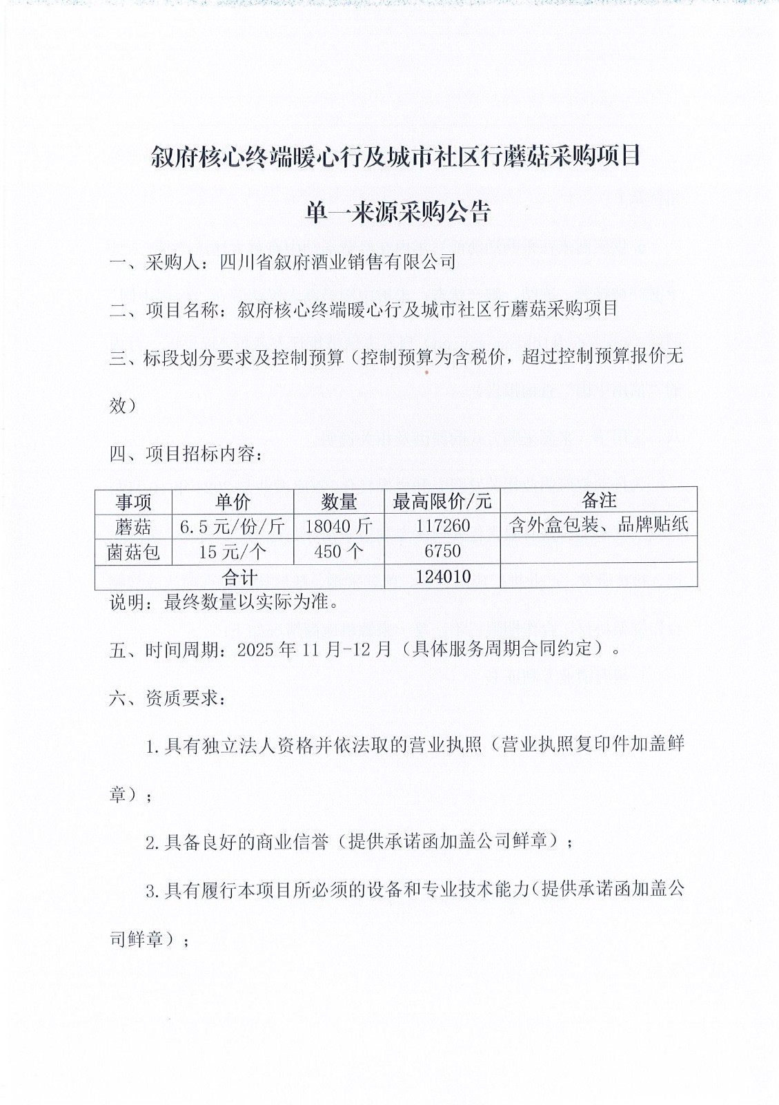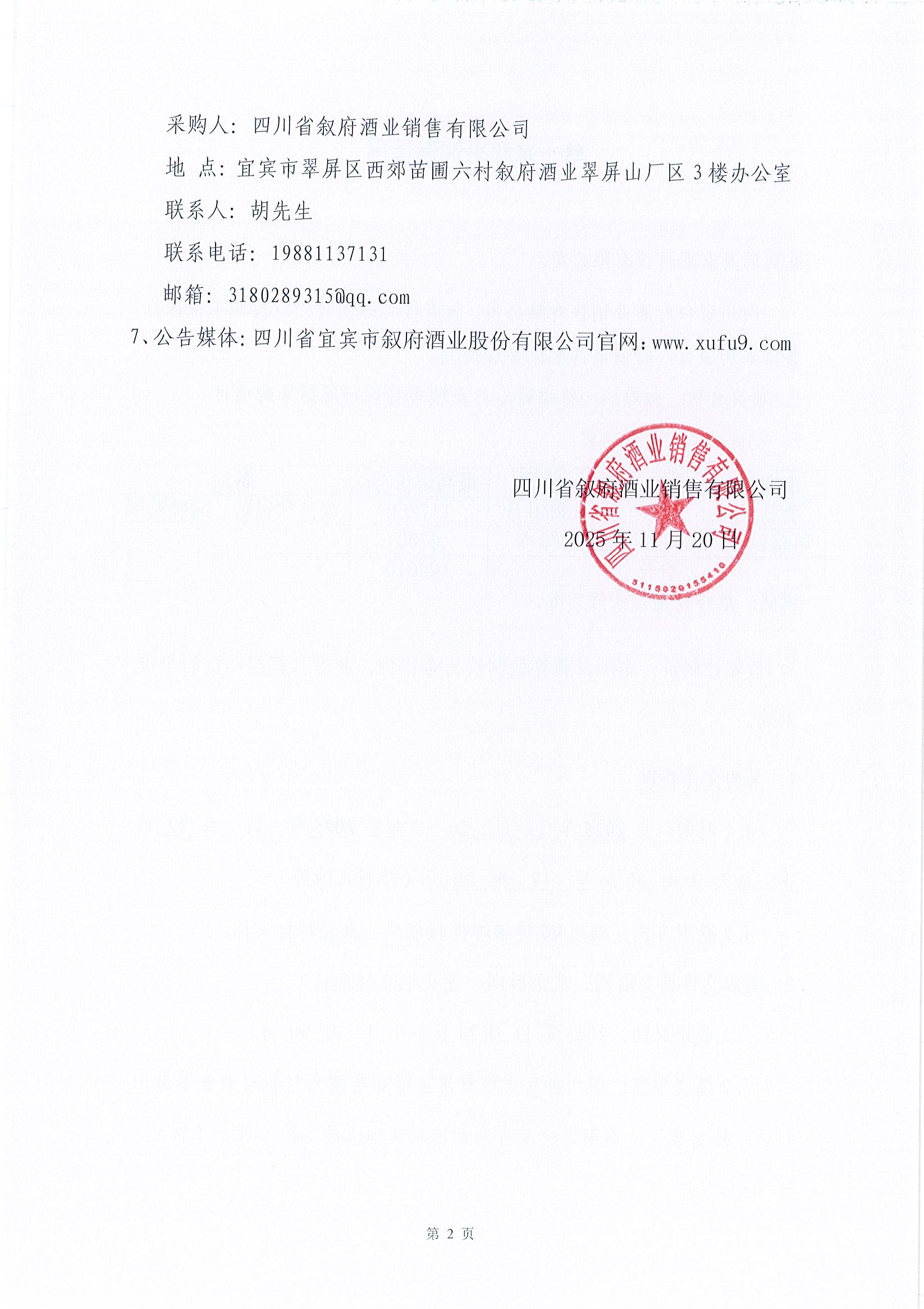 四川省敘府酒業(yè)銷售有限公司敘府核心終端暖心行及城市社區(qū)行、蘑菇單一來源采購項目中標(biāo)結(jié)果公示公告