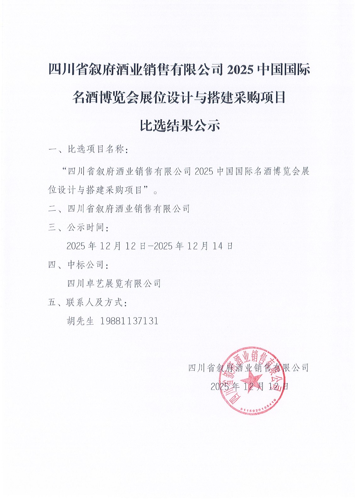 四川省敘府酒業(yè)銷售有限公司敘府品牌跨年直播運(yùn)營服務(wù)項(xiàng)目單一來源招標(biāo)公告