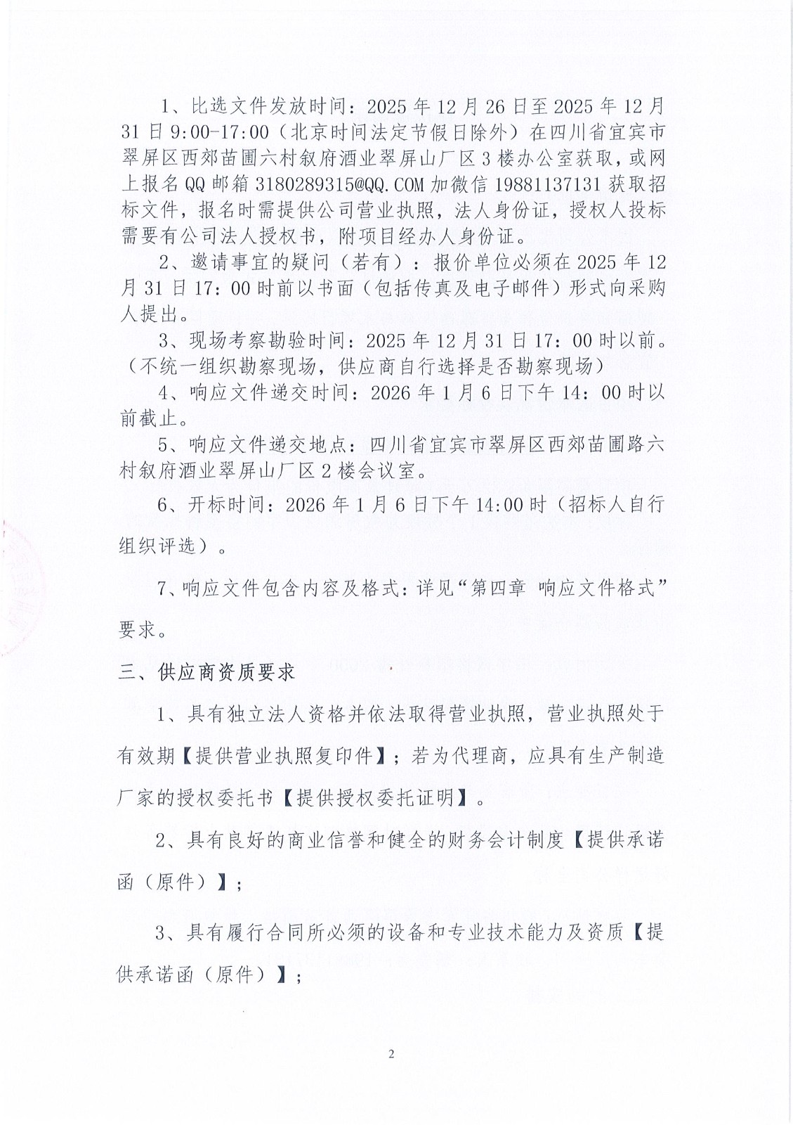 四川省宜賓市敘府酒業(yè)股份有限公司電動(dòng)四輪車采購項(xiàng)目比選招標(biāo)公告