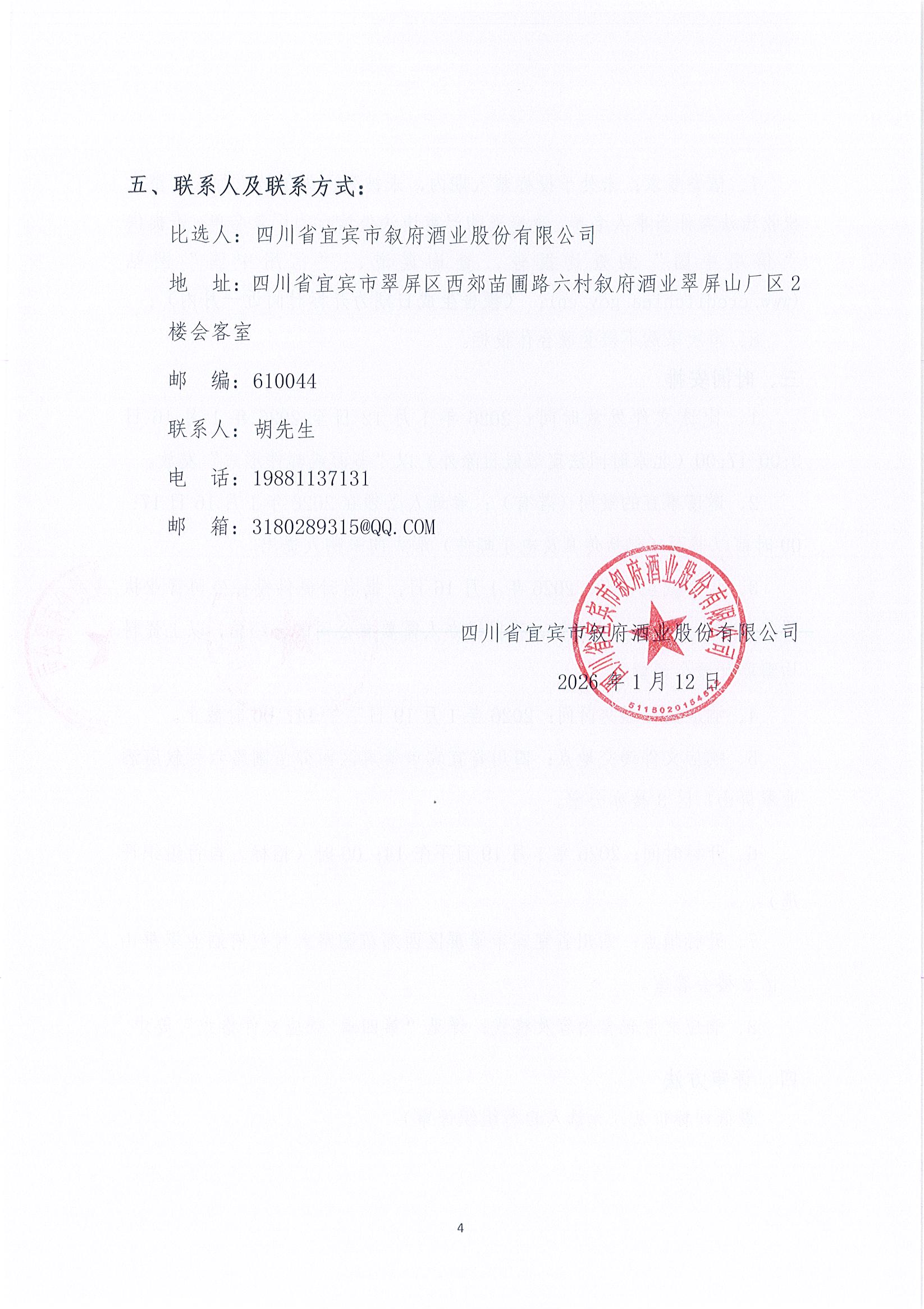四川省宜賓市敘府酒業(yè)股份有限公司物流運(yùn)輸服務(wù)采購項(xiàng)目比選招標(biāo)公示公告