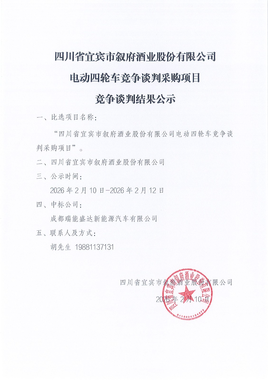 四川省敘府酒業(yè)銷(xiāo)售有限公司2026敘府酒業(yè)經(jīng)銷(xiāo)商價(jià)值共創(chuàng)大會(huì)搭建及服務(wù)采購(gòu)項(xiàng)目競(jìng)爭(zhēng)談判公告