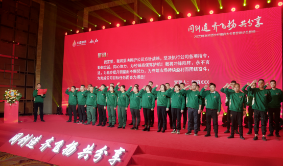 新的藍圖已然呈現(xiàn),戰(zhàn)鼓隨即擂響!“我宣誓,我將堅決擁護公司方針戰(zhàn)略……為穩(wěn)步提升銷量而不懈努力,為終端市場持續(xù)盈利而團結(jié)奮斗,為完成公司目標任務(wù)而奮力搏擊!”臺上,敘府營銷團隊聲聲誓詞直沖云霄;臺下,經(jīng)銷商掌聲雷動。沖刺的號角已經(jīng)吹響,敘府軍團已整裝待發(fā),他們將揚起奮進的風(fēng)帆,譜寫敘府新華章。